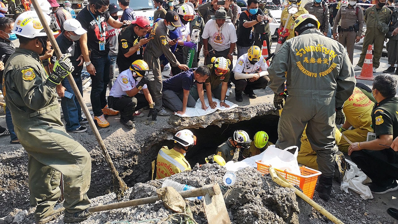 เจ้าหน้าที่กู้ภัยเข้าช่วยเหลือ 2 คนงาน บ.พระราม 2 การโยธา ซึ่งรับงานมาจากสำนักการระบายน้ำ กทม. ขุดถนนเพื่อลงไปเชื่อมท่อน้ำทิ้งบริเวณถนนเอกมัย แต่แรงสั่นสะเทือนของรถที่วิ่งทำให้ดินในช่องที่ขุดลงไปถล่มทับจนนายโซเจีย จัน ชาวกัมพูชาเสียชีวิต ส่วนนายวิน เหว่ย ชาวพม่าบาดเจ็บสาหัส สาเหตุอยู่ระหว่างสอบสวน.