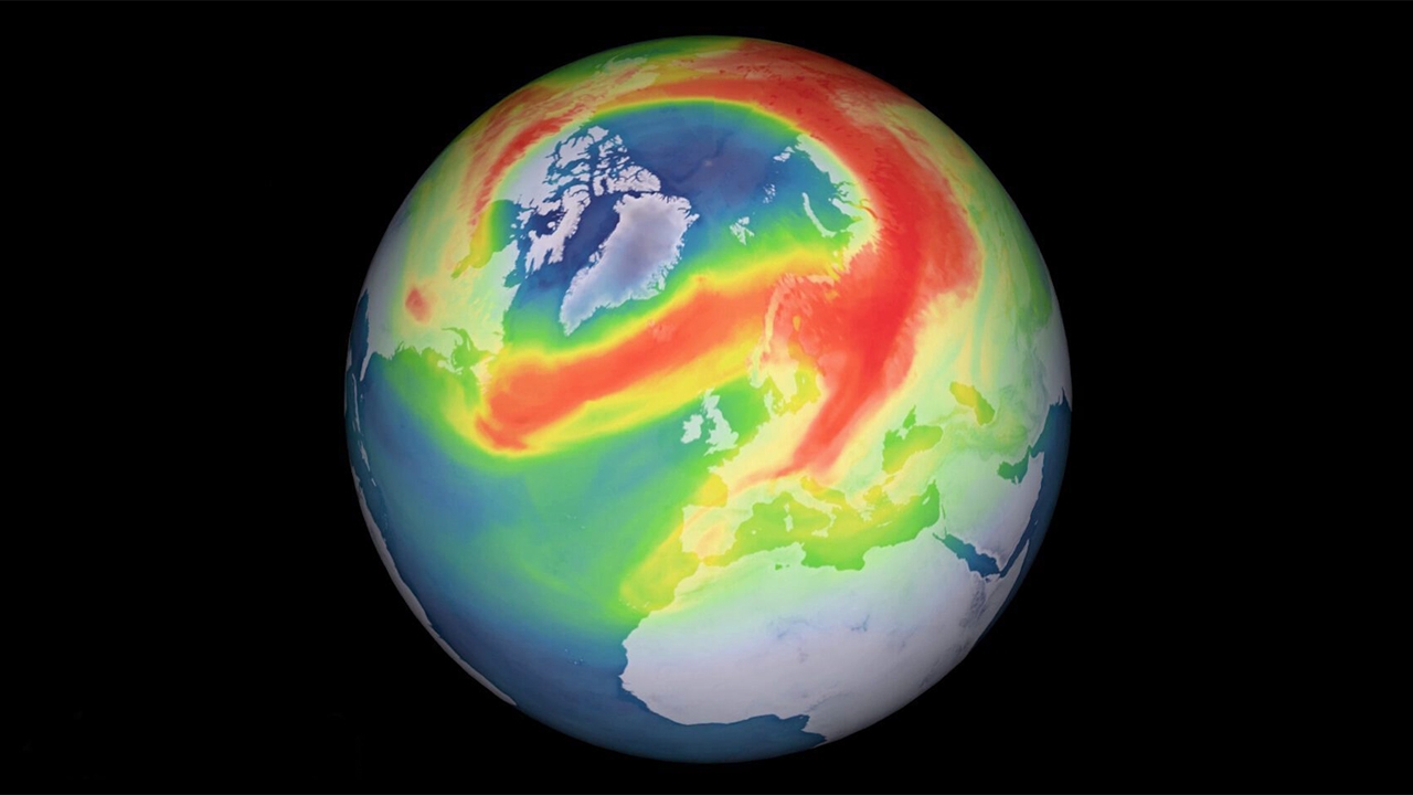 Credit : includes modified Copernicus data (2020), processed by DLR/BIRA/ESAชั้นโอโซน (Ozone) เป็นชั้นป้องกันตามธรรมชาติในบรรยากาศชั้นสตราโตสเฟียร์ (Stratosphere) ซึ่งป้องกันสิ่งมีชีวิตในโลกจากรังสีอัลตราไวโอเลตที่เป็นอันตรายจากดวงอาทิตย์ และเกี่ยวข้องกับมะเร็งผิวหนัง ต้อกระจก รวมถึงปัญหา สิ่งแวดล้อมอื่นๆนักวิทยาศาสตร์เผยว่า หลุมโอโซน (Ozone hole) ที่พบมากที่สุดคือหลุมโอโซนเหนือทวีปแอนตาร์กติกา ที่ก่อตัวขึ้นทุกปีในช่วงฤดูใบไม้ร่วง แต่เมื่อเร็วๆ นี้นักวิทยาศาสตร์จากศูนย์การบินและอวกาศเยอรมนี ได้ใช้ข้อมูลจากเครื่องมือ Tropomi บนดาวเทียม Copernicus Sentinel-5P ขององค์การอวกาศยุโรป สังเกตเห็นการลดลงของความเข้มข้นของโอโซนเหนือแถบอาร์กติกในสภาพบรรยากาศที่ผิดปกติ และสามารถตรวจสอบรูปแบบของหลุมโอโซนอาร์กติกในชั้นบรรยากาศได้ในอดีตนั้นมีการพบหลุมโอโซนขนาดเล็กเป็นครั้งคราวในขั้วโลกเหนือ แต่หลุมโอโซนที่สังเกตในแถบอาร์กติกในปีนี้ มีการขยายตัวสูงสุดไม่เกิน 1 ล้านตารางกิโลเมตร มีขนาดเล็กเมื่อเทียบกับหลุมแอนตาร์กติกราวๆ 20-25 ล้านตารางกิโลเมตร โดยมีระยะเวลาปกติประมาณ 3-4 เดือน ซึ่งการลดลงของโอโซนในอาร์กติกมีแนวโน้มที่จะน้อยกว่าแอนตาร์กติกาอย่างมีนัยสำคัญ.