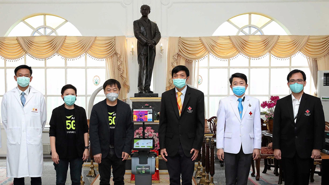 นายวสิษฐ์ วัฒนศัพท์ หัวหน้าฝ่ายวิศวกรรม บมจ.แอดวานซ์ อินโฟร์ เซอร์วิส (AIS) ส่งมอบหุ่นยนต์ Robot For Care แก่ รพ.จุฬาลงกรณ์ เพื่อใช้ในการตรวจอาการผู้ป่วยติดเชื้อ ไวรัสโควิด-19 มี ผศ.นพ.โอภาส พุทธเจริญ ผู้แทนผู้บริหาร ร่วมรับมอบสถานการณ์การแพร่ระบาดไวรัส “โควิด-19” (COVID-19) ในประเทศไทย มีแนวโน้มไปในทิศทางที่ดีขึ้น หากแต่ “นักรบเสื้อกาวน์” บุคลากรทางการแพทย์ ซึ่งเป็นหน้าด่านในการรับมือกับไวรัส “โควิด-19” ยังคงต้องทุ่มเททำงานหนักและรับความเสี่ยงในทุกๆวันขณะที่ภาคเอกชนหลายองค์กรจับมือกับมหาวิทยาลัยต่างๆช่วยกันคิดค้น และสร้างสรรค์นวัตกรรมทางการแพทย์ เพื่อช่วยป้องกันรักษาชีวิตของแพทย์ พยาบาลและบุคลากรทางการแพทย์ในการรักษาผู้ป่วยติดเชื้อไวรัสร้ายบมจ.แอดวานซ์ อินโฟร์ เซอร์วิส หรือ เอไอเอส (AIS) อีกหนึ่ง องค์กรภาคเอกชนที่ได้ตระหนักถึงบทบาทสำคัญของบุคลากรทางการแพทย์ รศ.นพ.เชิดชัย นพมณี รอง ผอ. รพ.ศิริราช รับมอบหุ่นยนต์ Robot For Care จาก นายวสิษฐ์ วัฒนศัพท์ หัวหน้าฝ่ายวิศวกรรม AIS เพื่อเข้าช่วยดูแลและตรวจผู้ป่วยติดเชื้อโควิด-19 ภายในหอผู้ป่วย โดยระบบสั่งการปลอดภัยแก่แพทย์.จึงได้ระดมสรรพกำลังและความเชี่ยวชาญด้านเทคโนโลยีการสื่อสาร ผนวกเทคโนโลยี 5G ที่ทรงประสิทธิภาพ พร้อมพัฒนาหุ่นยนต์ผู้ช่วยแพทย์ 5G เพื่อสนับสนุนการทำงานของทีมแพทย์และพยาบาลอย่างเต็มกำลังนายสมชัย เลิศสุทธิวงค์ ประธานเจ้าหน้าที่บริหารเอไอเอส กล่าวว่า ท่ามกลางวิกฤติการแพร่ระบาดของไวรัสโควิด-19 กลุ่มบุคลากรทางการแพทย์ นับว่าเป็นผู้ที่ต้องทำงานอย่างหนัก เผชิญกับความเสี่ยงจากการสัมผัส หรือใกล้ชิดผู้ป่วย อีกทั้งยังประสบปัญหาขาดแคลนอุปกรณ์ป้องกันต่างๆ นพ.สุกรม ชีเจริญ รอง ผอ.ด้านการแพทย์ รพ.ราชวิถี รับมอบหุ่นยนต์ Robot For Care จาก นายวสิษฐ์ วัฒนศัพท์ หัวหน้าฝ่ายวิศวกรรม AIS.ดังนั้น เอไอเอส ในฐานะ Digital Life Service Provider ได้นำ เทคโนโลยีดิจิทัลที่มีอยู่เข้ามาช่วยเหลือคนไทยทุกภาคส่วน เพื่อแบ่งเบาภาระ การทำงานของบุคลากรทางการแพทย์ ผ่านเทคโนโลยีแห่งอนาคตอย่าง 5Gเริ่มด้วยเร่งขยายโครงข่าย 5G ครอบคลุมพื้นที่ 159 โรงพยาบาล ทั่วประเทศ รองรับการปฏิบัติงานของบุคลากรทางการแพทย์ด้วยอินเตอร์เน็ตความเร็วสูง และการตอบสนองที่รวดเร็วที่เป็นคุณสมบัติสำคัญของ 5G พร้อมสนับสนุนระบบสื่อสารทั้ง AIS Fibre, 4G, AIS Super WiFi และสมาร์ทดีไวซ์ นายวสิษฐ์ วัฒนศัพท์ หัวหน้าฝ่ายวิศวกรรม AIS จับมือกับคณาอาจารย์คณะวิศวกรรมชีวการแพทย์ จุฬาฯ นำ 5G มาเพิ่มขีดความสามารถหุ่นยนต์อัจฉริยะ.เพิ่มประสิทธิภาพการบริหารจัดการของทีมแพทย์ ซึ่ง
