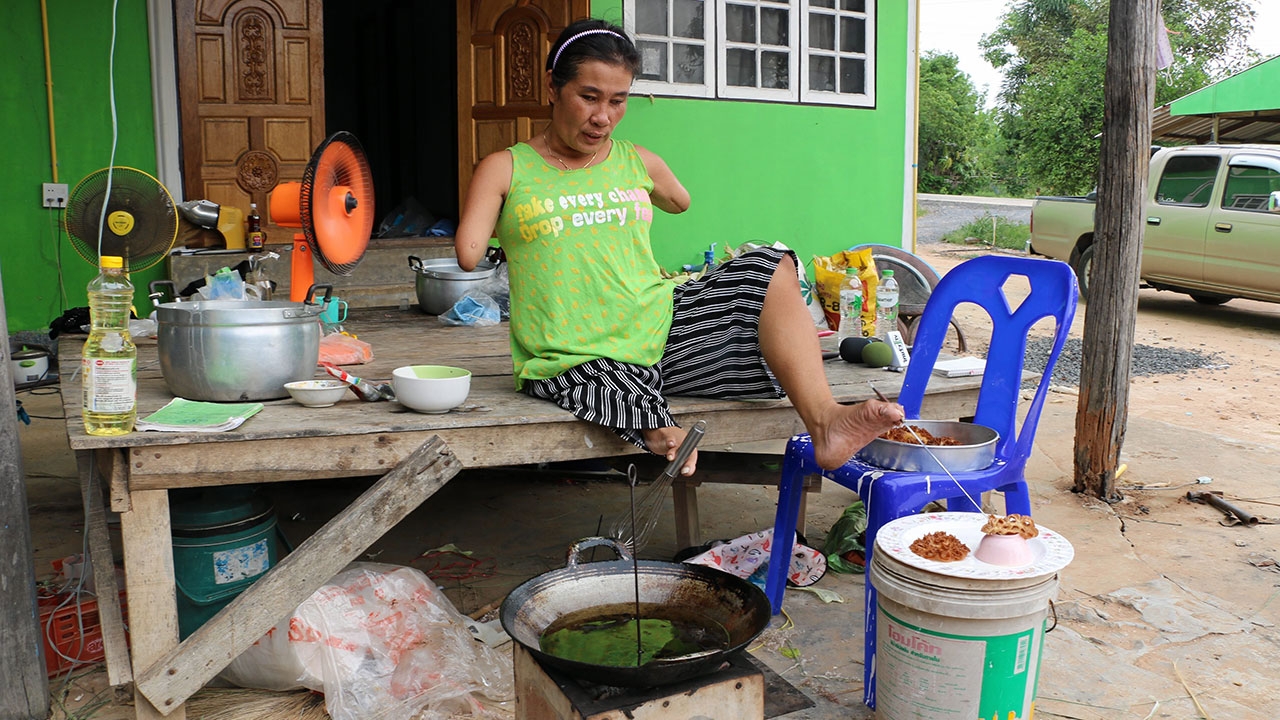 ตีนสู้ชีวิต สาวด้วน-แกร่ง ไม่ท้อโควิดทำขนมขาย
