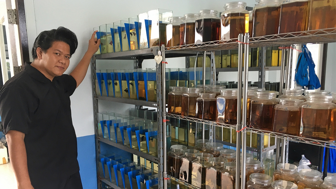 การระบาดของไวรัสโควิด-19 ในบ้านเราเริ่มบรรเทาเบาบางลง หลายกิจการได้ออกมาค้าขายกันได้บ้างแล้ว...แต่กลุ่มผู้เพาะเลี้ยงปลากัดส่งออกต่างประเทศยังมีวิบากกรรม อเมริกา เยอรมนี ฝรั่งเศส ที่ไม่รู้จะเปิดประเทศเมื่อไร “ตั้งแต่เริ่มมีการปิดประเทศ เกษตรกรผู้เพาะเลี้ยงปลากัดมีปัญหาเป็นอย่างมาก ส่งออกไปต่างประเทศไม่ได้ เพราะสายการบินหยุดทำการ แต่มีข้อดีอยู่บ้าง ทำให้วงการปลากัดไทยมีโอกาสได้พัฒนาสายพันธุ์ปลาให้มีคุณภาพมากขึ้น”ดร.สหภพ ดอกแก้ว หัวหน้าศูนย์วิจัยและถ่ายทอดเทคโนโลยีปลาสวยงาม คณะประมง มหาวิทยาลัยเกษตรศาสตร์ (มก.) บอกว่า การพัฒนาพันธุ์ปลากัดครั้งนี้ กลุ่มผู้เพาะเลี้ยงปลากัด หรือ Siamese fighting fish ทำขึ้นเพื่อหารายได้จากการขายปลากัดภายในประเทศ ชดเชยการส่งออกที่ช่วงนี้ทำไม่ได้เลย “เพราะตลาดปลากัดในบ้านเรา การซื้อขายมีไม่มากเพราะส่วนใหญ่แล้วชาวบ้านจะเพาะกันเอง หรือไม่ก็ไปจับมาจากธรรมชาติ ในท้องทุ่งมีเยอะแยะไปหมด ไม่เหมือนตลาดต่างประเทศที่ซื้อปลากัดไปเลี้ยงเพราะความสวยงามเป็นหลัก ถ้าเราจะ เอาปลากัดสวยงามเหล่านี้มาขายในบ้านเราคงขายไม่ออก คนไทยคงไม่ซื้อ นอกจากราคาจะแพงต่างกันมากถึงเท่าตัว ปลากัดยังมีอายุสั้นเลี้ยงได้นานเกิน 1 ปี”เพื่อให้เหมาะกับตลาดในประเทศ...ทางกลุ่ม Siamese fighting fish เลยหาวิธีพัฒนาพันธุ์ปลากัดที่สามารถดึงดูดลูกค้าคนไทยได้ คราวน์เทล.นอกจากจะทำให้ปลากัดมีราคาในระดับที่คนไทยจับต้องได้แล้ว จะต้องมีความสวยงามที่แปลกและหลากหลายจนคนไทยยอมควักเงินซื้อ“ความสวยงามของปลากัดที่ถูกตาต้องใจคนซื้อ จะอยู่ที่สีเป็นหลัก ในตัวเดียวต้องมีหลายเฉดสี และปลากัดสวยงามที่โดดเด่นที่สุดของวงการปลากัด ไม่มีอะไรเกินไปกว่า ปลากัดสีธงชาติไทย หรือ Thai Flag Betta จึงมีการนำเทคนิคการพัฒนาพันธุ์ปลากัดสีธงชาติมาเป็นต้นแบบในการปรับปรุงพันธุ์ พร้อมถ่ายทอดเทคนิคการผสมพันธุ์ให้กับกลุ่มผู้เพาะเลี้ยงด้วยกัน เพื่อจะได้เพิ่มปริมาณปลากัดสวยงามให้มีในท้องตลาดมากขึ้น นอกจาก จะทำให้เกิดการแข่งขัน ปลากัดมีราคาถูกลง และยังทำให้มีความสวยงามที่หลากหลายมากขึ้นด้วย” ไตรรงค์.จากปลากัดสีไตรรงค์ แดงขาวน้ำเงิน และมีสีอื่นแต้มแต่งเติมประปราย มีการพัฒนาให้สีแดงขาวน้ำเงินชัดเจน และทรงหางที่ยาวอ่อนช้อยมากขึ้น มีทั้งปลากัดพันธุ์ที่เรียกกันว่า คราวน์เทลหางคล้ายมงกุฎ...ฮาล์ฟมูน หางครึ่งวงพระจันทร์... ฟูลมูน หางพระจันทร์เต็มดวง ฟูลมูน.ส่งผลให้การประกวดปลาสวยงามเวทีใหญ่ที่สุดในไทย เกษตรแฟร์ ที่เดิมทีจะมีการประกวดป