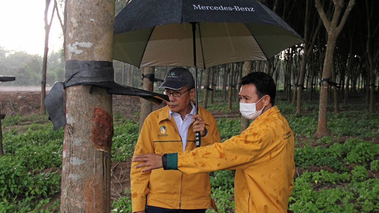 กยท.เปิดตัวนวัตกรรมหมวกยาง พารากันฝน นำร่องติดต้นยางกว่า 30 ไร่ เพิ่มผลผลิต น้ำยางไม่ปนน้ำฝน เตรียมส่งเสริมให้ใช้ทั่วประเทศนายณกรณ์ ตรรกวิรพัท รองผู้ว่าการการยางแห่งประเทศไทย (กยท.) เผยว่า จากความร่วมมือกับสถาบันเทคโนโลยีจิตรลดา และบริษัท ปตท. จำกัด (มหาชน) เปิดจุดสาธิตการใช้เทคโนโลยีและนวัตกรรมเพื่อเพิ่มประสิทธิภาพในการเก็บเกี่ยวผลผลิตยางพารา ในเขตภาคกลาง และภาคตะวันออก โดย กยท.ได้มอบผลิตภัณฑ์หมวกยางพาราหรือร่มกันฝนจากยางพารา 2,000 ชุด ติดตั้งในพื้นที่ 30 ไร่ ของสวนยางพาราสาธิต ศูนย์การเรียนรู้เกษตรนวัต สถาบันเทคโนโลยีจิตรลดา ต.ป่ายุบใน อ.วังจันทร์ จ.ระยอง เพื่อเป็นจุดต้นแบบเรียนรู้ของเกษตรกรชาวสวนยาง สถาบันเกษตรกรชาวสวนยางผู้ประกอบกิจการยาง และประชาชนทั่วไป “ปกติการกรีดยางในฤดูฝน ชาวสวนยางมักจะใช้พลาสติกห่อหุ้มต้นยางไว้กันฝน นอกจากมีปัญหาฉีกขาดง่ายๆ และยังป้องกันน้ำฝนไหลลงถ้วยรองรับน้ำยางไม่ได้ กยท.จึงได้คิดค้นผลิตภัณฑ์หมวกยางพารา โดยให้กลุ่มวิสาหกิจชุมชนอุตสาหกรรมผลิตภัณฑ์ยาง อ.วังจันทร์ จ.ระยอง ได้นำยางแท่ง หรือยางคอมพาวด์ มาผสม ทำขึ้นรูปแบบที่เหมาะสมในการสวมให้กับต้นยาง โดยเริ่มทดลองมาตั้งแต่ต้นปีที่ผ่านมา ปรากฏว่าสามารถช่วยเพิ่มผลผลิตและรายได้ให้กับชาวสวนยางได้ เพราะทำให้เกษตรกรเพิ่มวันกรีดยางได้อย่างน้อยปีละ 30 วัน คิดเป็นปริมาณผลผลิตน้ำยางที่ได้เพิ่มขึ้นเฉลี่ยประมาณ 2 กก. ยางแห้งต่อไร่ต่อ 1 วัน หรือ 60 กก.ยางแห้งต่อไร่ต่อปี” รองผู้ว่าการ กยท. เผยอีกว่า ผลิตภัณฑ์หมวกยางพาราหรือร่มกันฝน ไม่เพียงจะช่วยให้เกษตรกรมีรายได้เพิ่มมากขึ้น ยังทำให้สถาบันเกษตรกรมีรายได้จากการนำยางพารามาแปรรูปหมวกกันฝนอีกด้วย เพราะทาง กยท.มีโครงการที่จะส่งเสริมให้เกษตรกรได้ใช้ทั่วประเทศ เพราะเมื่อคิดต้นทุนค่าหมวกที่ตกไร่ละ 130 บาท เปรียบเทียบกับผลผลิตที่เพิ่มขึ้น ถือว่าคุ้มค่า ลงทุนแค่ครั้งเดียว คืนทุนและมีกำไรในปีแรก และยังใช้ได้นานหลายปี.