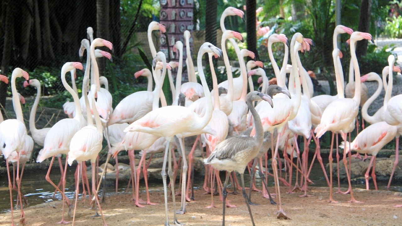 นกฟลามิงโก สีชมพูสวยงามตามสวนสัตว์ เด็กรู้จักกันดี เพราะมีสัญลักษณ์ของนกชนิดนี้ติดบนผลิตภัณฑ์ต่างๆ ไม่ว่าจะเป็นเสื้อ กระเป๋า รองเท้า ฯลฯ จนกลายเป็นวัฒนธรรมร่วมสมัย...แต่นั่นเป็นนกฟลามิงโกเล็ก ที่เกิดจากการผสมพันธุ์ขึ้นมาใหม่ไม่ใช่ฟลามิงโกใหญ่ที่เป็นนกโบราณ น.สพ.เกษตร สุเตชะ มหาวิทยาลัยเกษตรศาสตร์ ให้ข้อมูล เหตุที่จัดเป็นนกโบราณ เพราะนักโบราณคดีได้เคยพบฟอสซิลที่ทะเลสาบนากูรู ตอนเหนือของประเทศเคนยา...จนสามารถพิสูจน์ได้ว่ามันเคยอยู่บนโลกใบนี้มานานไม่น้อยกว่า 30 ล้านปีในธรรมชาติปัจจุบันยังอาศัยอยู่ที่นั่น รวมกันเป็นฝูงขนาดใหญ่อาจมากถึง 2 ล้านตัว และยังมีถิ่นอาศัยอยู่ในทวีปยุโรปจดมาถึงทวีปเอเชีย บริเวณทะเลเมดิเตอร์เรเนียน ทวีปแอฟริกา และอินเดียตะวันตกเฉียงเหนือนกฟลามิงโกใหญ่ถือเป็นนกที่สวยงามมาก คอและขายาว ขนสีชมพู ขนปีกสีดำ ปากสีชมพู ปลายปีกสีดำ โดยเฉพาะในฤดูผสมพันธุ์ สีตามร่างกายจะสดใสกว่าปกติ มีจะงอยปากพิเศษคล้ายเหงือกของวาฬ ใช้กรองแพลงก์ตอนตอนหากินอาหารชอบทำรังด้วยดินโคลนอยู่ตามชายฝั่งหนองบึงหรือทะเลสาบ โดยใช้จะงอยปากสร้างรังทรงคล้ายภูเขาไฟสูงประมาณ 15 ซม. เพื่อวางไข่ กกไข่ และเลี้ยงลูกน้อยจนเดินเองได้ นกชนิดนี้ผสมพันธุ์ในฤดูหนาว วางไข่ครั้งละ 1 ฟอง ใช้เวลาฟัก 28-32 วันเป็นเรื่องแปลกที่นกฟลามิงโกใหญ่ไร้ประสาทรับกลิ่น จึงวิวัฒนาการให้ส่งเสียงร้องคุยกันอยู่ตลอดเวลา...แม้แต่ลูกนกใกล้ฟักที่อยู่ในไข่ยังส่งเสียงร้องได้ด้วย และพ่อ–แม่ นกจะจดจำเสียงลูกของตัวเองได้เป็นอย่างดี เวลาฤดูผสมพันธุ์นกทำรังวางไข่เป็นหมื่นๆรัง ยังสามารถหาลูกน้อยของตัวเองจนเจอ.