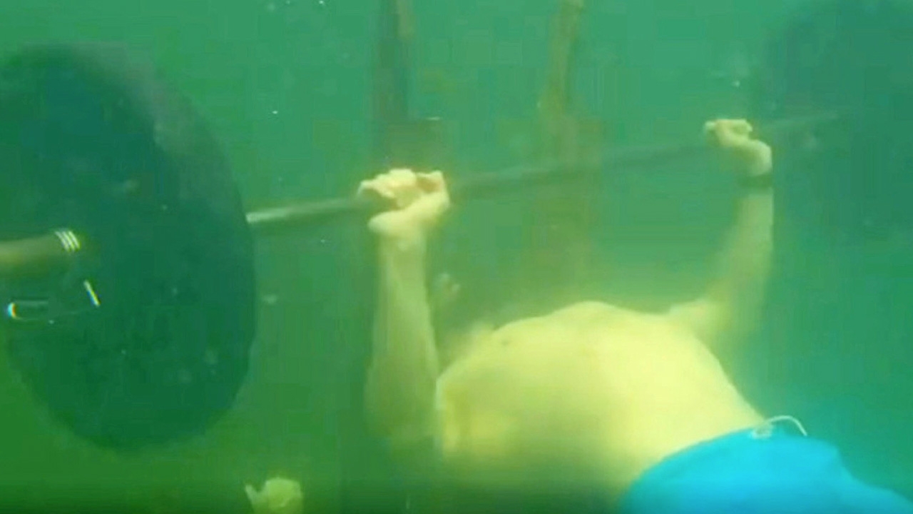 เล่นเวทเพิ่มกล้ามเนื้อหน้าอกด้วยบาร์ยกน้ำหนัก เบนช์ เพรสส์ (Bench press) แบบธรรมดาๆโลกคงไม่จำเท่าไหร่ เพราะใครๆก็เล่นได้ ถ้ามั่นใจว่าแข็งแรงพอ แต่ใช่ว่าจะไม่เหลือความท้าทายกับการออกกำลังกายแบบนี้ เมื่อมีหนุ่มรัสเซียอยากลองเปลี่ยนสภาพแวดล้อมใหม่ๆ ในการนอนหงายยกบาร์ ฮึบ ฮึบอุปกรณ์การยกเวทเลยต้องระเห็จไปอยู่ใต้น้ำในทะเลสาบ Lebyazhye และไม่ให้เสียโอกาสไปเปล่าๆ งานนี้ วิทาลี วิฟชาร์ ครูฝึกกีฬาจากเมืองทอมสค์ จึง สร้างสถิติกินเนสส์ เวิลด์ เรกคอร์ด เล่นเวทเบนช์ เพรสส์ ใต้น้ำ ยกบาร์เบลล์หนัก 110 ปอนด์ หรือประมาณ 49.9 กิโลกรัม โดยยกขึ้นยกลงซ้ำๆกัน 76 ครั้งวิทาลี วิฟชาร์ เผยว่า เขาฝึกอยู่ 2 เดือน และความพยายามก็สำเร็จเพราะได้ ทุบสถิติที่หนุ่มมะกัน เกร็ก วิตต์สตอค ทำไว้ที่ 62 ครั้ง กับบาร์เบลล์หนัก 50 กิโลกรัมหนุ่มหมีขาวเลยได้ตำแหน่งผู้ยกบาร์เบลล์ใต้น้ำที่แข็งแกร่งที่สุดในปฐพีไปทันที.แมวสามสีภาพจาก : © Instagram/vivcharvitaly