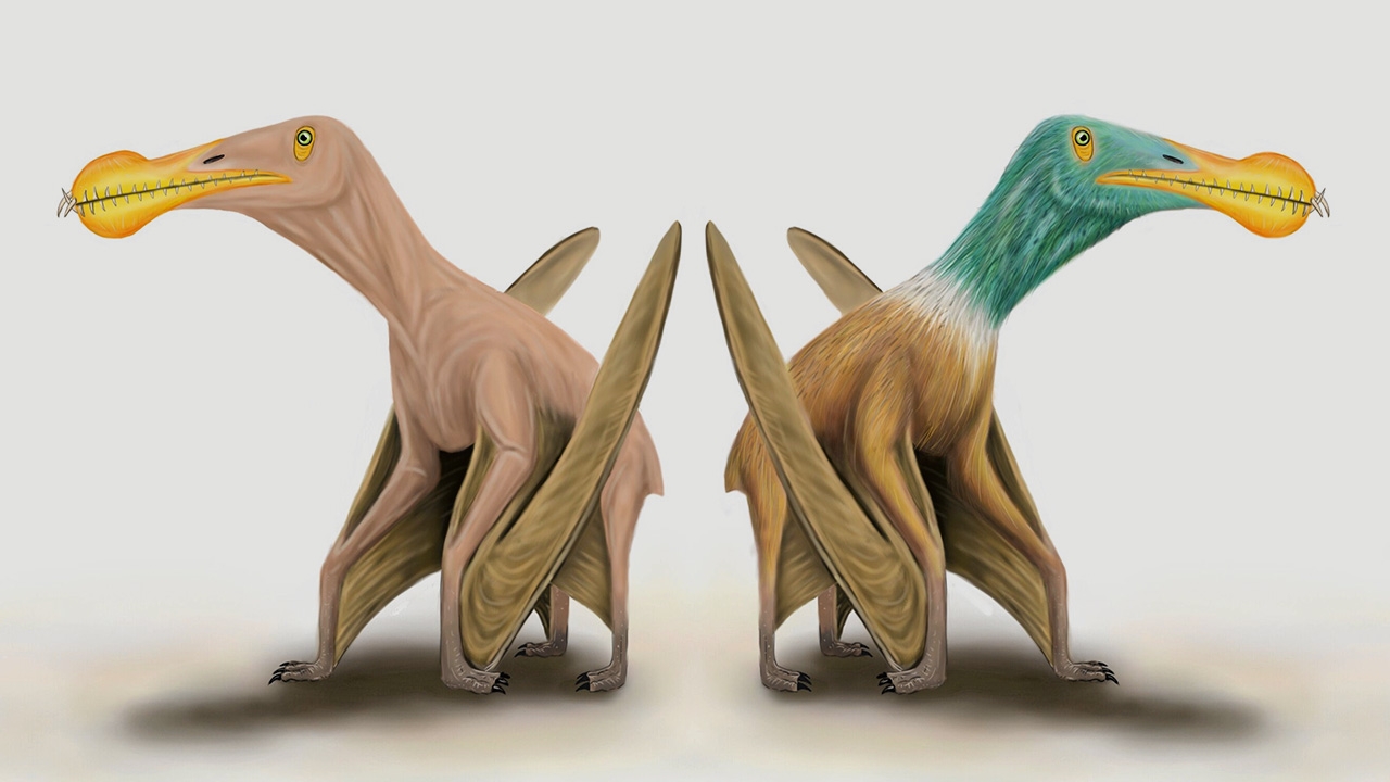 เมื่อปี พ.ศ.2561 นักวิจัยจากมหาวิทยาลัยหนานจิงของจีน รายงานว่าพบหลักฐานลักษณะการแตกแขนงของขนแรกเริ่ม (protofeathers) ในซากดึกดำบรรพ์หรือฟอสซิล 3 ชิ้นของเครือญาติไดโนเสาร์ ที่รู้จักกันว่าเป็นสัตว์เลื้อยคลานบินได้ยุคก่อนประวัติศาสตร์ ที่เรียกว่าเทอโรซอร์ (pterosaurs)ต่อมาทีมนักบรรพชีวินวิทยาจากศูนย์วิจัยบรรพชีวินวิทยาของมหาวิทยาลัยเลสเตอร์ ในอังกฤษ ได้ตรวจสอบหลักฐานดังกล่าวอีกครั้ง และได้ข้อสรุปว่าสัตว์เลื้อยคลานบินได้เหล่านี้ไม่มีขนเลย เนื่องจากโครงสร้างแตกแขนงเหล่านั้นไม่น่าจะใช่ขนแรกเริ่มของเทอโรซอร์ แต่เป็นเส้นใยเหนียวซึ่งเป็นส่วนหนึ่งของโครงสร้างภายในเยื่อบุผิวตรงปีกของเทอโรซอร์ โดยการแตกแขนงนั้นอาจเป็นผลมาจากเส้นใยเกิดการสลายตัวและคลายลง พร้อมกับเชื่อว่าซากฟอสซิล 3 ชิ้นนี้เป็นของเทอโรซอร์ที่น่าจะมีหัวล้านอีกด้วยแม้ว่าการวิจัยสิ่งเหล่านี้จะดูเหมือนข้อปลีกย่อยทางวิชาการ แต่ก็มีผลกระทบต่อการศึกษาบรรพชีวินวิทยาอย่างมาก โดยเฉพาะวิวัฒนาการของขนเทอโรซอร์ ไดโนเสาร์ และนก เพราะหมายความว่าเทอโรซอร์มีขนที่เก่าแก่ที่สุด ปรากฏตัวครั้งแรกโดยเป็นบรรพบุรุษร่วมกันของเทอโรซอร์และไดโนเสาร์ ซึ่งบ่งชี้ว่าองค์ประกอบที่คล้ายขนนกวิวัฒนาการมาอย่างน้อย 80 ล้านปี เร็วกว่าที่เคยคิดไว้.(ภาพจาก : Megan Jacobs, University of Portsmouth)