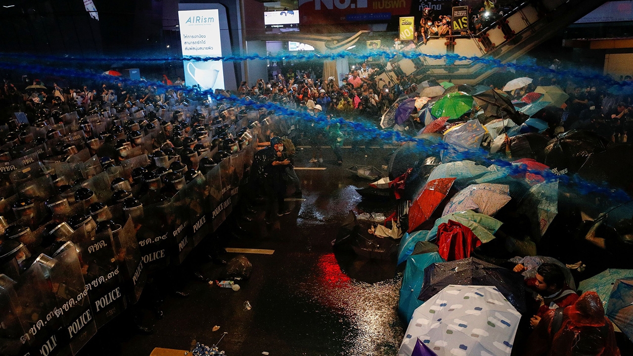 สถานการณ์การชุมนุมสี่แยกปทุมวัน คํ่าคืนวันที่ 16 ตุลาคม 2563 ท่ามกลางการเผชิญหน้าระหว่างกลุ่ม “ผู้ชุมนุม” และ “เจ้าหน้าที่” ที่เดินหน้าตั้งแถวรุกคืบกระชับพื้นที่ความอลหม่านท่ามกลางสายฝนที่เริ่มกระหน่ำลงมาอย่างหนัก ผู้ชุมนุม ต้องนำเสื้อกันฝนและร่มออกมากันฝน กระทั่งเจ้าหน้าที่เข้าสลายการชุมนุม ฉีดน้ำผสมสีฟ้าจากรถประจัญบานม็อบ “จีโน”ทำให้การ์ด มวลชน สื่อมวลชนที่ถูกฉีดน้ำ เกิดอาการปวดแสบ ปวดร้อน แสบตา คันผิวหนังไปตามๆกัน จนต้องถอยไปตั้งแนวรับตามแนวถนนห่างจากกำลังเจ้าหน้าที่ราว 50 เมตร“รถฉีดน้ำแรงดันสูง” หรือที่เรียกกันว่า “จีโน” ใช้ควบคุมฝูงชน นำเข้ามาจากประเทศเกาหลีใต้ ในราคาคันละ 25 ล้านบาท มีคุณสมบัติเด่นด้วยล้อกันกระสุน ตะแกรงป้องกันกระจกรอบคัน มีคันกั้นเหล็กหน้ารถไว้เคลียร์พื้นที่ที่อาจมีสิ่งกีดขวาง และยังมีกล้องวงจรปิดติดตั้งรอบคัน เพื่อบันทึกภาพเหตุการณ์แบบรอบทิศทางสามารถนำมาใช้เป็นหลักฐานในกรณีเกิดเหตุการณ์รุนแรงไม่เพียงเท่านั้น...เจ้าจีโนยังมีกระบอกฉีดน้ำตั้งตระหง่านอยู่บนหลังคารถ ซึ่งบรรจุน้ำได้มากถึง 12,000 ลิตร โดยแรงฉีดน้ำสามารถยิงระยะไกลได้สูงสุด 65 เมตรเลยทีเดียวและน้ำยังสามารถผสมใส่สี เช่น สีม่วง น้ำเงิน เขียว ทำให้สีติดตามร่างกายของผู้ถูกฉีด สามารถบ่งชี้ชัดในการแบ่งแยกกลุ่มผู้ชุมนุมออกจากประชาชน รวมไปถึงสามารถผสมแก๊สน้ำตา หรือโฟมดับไฟ ขึ้นอยู่กับว่าอยู่ในสถานการณ์ใดหนึ่งในคำถามสำคัญที่หลายคนสงสัย “น้ำสีฟ้า” เป็นสารเคมีหรืออะไรกันแน่?“เคมีฟิสิกส์ของสิ่งทอ อาหาร และของรอบตัว” @textile.phys.and.chem วิทยาศาสตร์ เทคโนโลยี และวิศวกรรม เฟซบุ๊กเพจ แหล่งข้อมูลทฤษฎีทางด้านเคมีและฟิสิกส์ของสิ่งทอและวิทยาศาสตร์นอกกระแสอื่นๆ โพสต์ให้ความรู้เกี่ยวกับเรื่องนี้ไว้ วันที่ 1 ก.ย.2562 ขออนุญาตคัดลอกตัดตอนให้เป็นความรู้ ดังนี้อ้างอิงถึงที่ทางการของฮ่องกงได้มีการใช้งานสีย้อมสีน้ำเงินละลายน้ำ แล้วฉีดใส่ผู้ชุมนุมประท้วงเพื่อเป็นการยืนยันตัวตนของผู้ชุมนุมได้แบบที่เรียกว่า...เป็นหลักฐานติดตัวอย่างน้อย 3-7 วันได้เลยแอดเห็นสีที่ละลายน้ำที่เป็นสีน้ำเงิน (Blue)...แต่คราบสีที่ติดบนผิวหนังที่เป็นสีฟ้าอมเขียว (Greenish blue) บนร่างกายของผู้ชุมนุมนั้นคาดว่า...สีที่ว่านั้นน่าจะคือ “เมธิลลีนบลู” (Methylene Blue) หรือไม่ก็สีในกลุ่มของ Azure A, B, C หรืออาจจะเป็นสีของ “Thionine” (Lauth’s violet) ก็ได้นะครับ โดยสีทั้งหมดในซีรีส์นี้ต่างก็เป็นสีย้อมที่มีโครงสร้างส่วนให้สี (Chromophore) เป็น “ไธอะซีน” (Thiazines) ที่มีประจุบวก (cationic dyes) ที่สามารถติดบนวัสดุโป