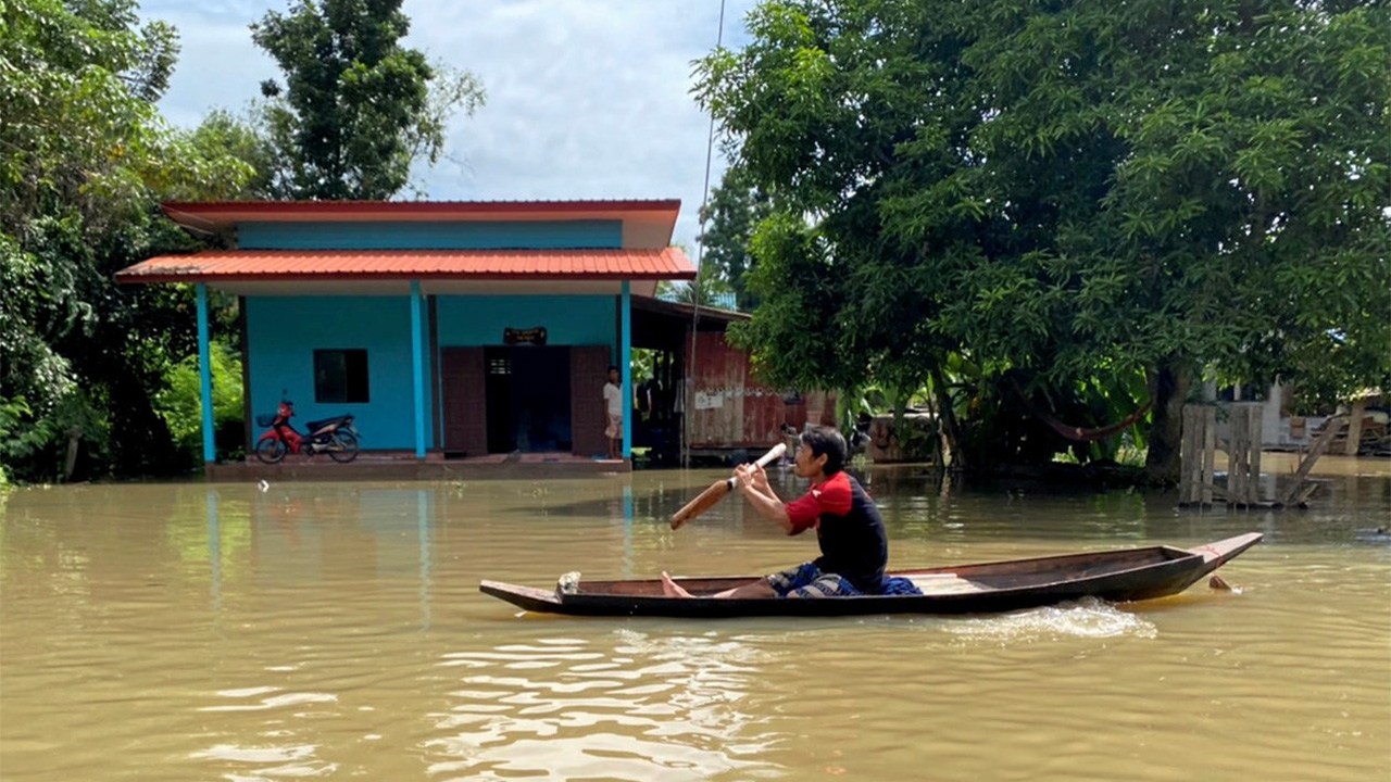 ลำตะคองวิกฤติหนัก เทศบาลนครนครราชสีมาปักธงแดงแจ้งเตือนชาวบ้านเร่งขนย้ายข้าวของขึ้นที่สูง หลังน้ำเอ่อล้นเข้าท่วมบ้านเรือนในชุมชนกว่า 500 หลังจมมิดพ่อเมืองโคราชแจงปริมาณน้ำในเขื่อนลำตะคอง เกินความจุแล้ว แต่ยังรับน้ำไหวไม่ระบายออกหวั่นชาวบ้านเดือดร้อนหนัก กบินทร์บุรียังอ่วม มวลน้ำไหลบ่าเข้าท่วมตลาดเทศบาลย่านเศรษฐกิจการค้า เกิดเหตุสลดหนุ่มพายเรือจะไปช่วยยายขนของหนีน้ำถูกซัดเรือล่มจมน้ำดับ เขื่อนเจ้าพระยารับน้ำเหนือต่อเนื่องจนต้องเพิ่มการระบายน้ำ แจ้งเตือนจังหวัดลุ่มเจ้าพระยาระวังน้ำล้นตลิ่ง อุตุฯประกาศเข้าฤดูหนาวอย่างเป็นทางการ ภาคเหนือฝนน้อยลง แต่ภาคใต้ยังมีฝนชุก สถานการณ์น้ำท่วม จ.นครราชสีมา ยังไม่พ้นวิกฤติ เมื่อช่วงเช้าวันที่ 22 ต.ค. เทศบาลนครนครราชสีมา ได้ปักธงแดงบริเวณสะพานข้ามลำน้ำลำตะคอง ปากทาง เข้าชุมชนมิตรภาพซอย 4 ต.ในเมือง แจ้งเตือนประชาชนเร่งขนย้ายข้าวของขึ้นที่สูง หลังน้ำจากลำตะคองเอ่อล้นตลิ่งหลากท่วมถนน ร้านค้า และบ้านเรือนกว่า 500 หลัง ระดับน้ำสูง 60-80 ซม. มีแนวโน้มสูงขึ้นชั่วโมงละ 1 ซม. รถเล็กไม่สามารถผ่านได้ เจ้าหน้าที่เร่งแจกจ่ายกระสอบทรายพร้อมนำรถบรรทุกยกสูงพาชาวบ้านเดินทางเข้าออก ส่วนชุมชนอื่นๆก็มีน้ำท่วมสูงเช่นกัน อาทิ ตะคองเก่า สำโรงจันทร์ บ้านเรือนถูกน้ำท่วมกว่า 80 หลัง ขณะที่ เขื่อนลำตะคองมีปริมาณน้ำ 340 ล้าน ลบ.ม. เกินระดับของความจุ 314 ล้าน ลบ.ม.นายวิเชียร จันทรโณทัย ผวจ.นครราชสีมา กล่าวภายหลังร่วมประชุมการบริหารจัดการน้ำในเขื่อนลำตะคองว่า เพื่อเป็นการลดความเสียหายของประชาชนท้ายลำน้ำลำตะคอง ที่ประชุมมีความเห็นว่าจะยังไม่ระบายน้ำออกจากเขื่อนลำตะคอง เนื่องจากเขื่อนมีความแข็งแรงและยังสามารถรองรับน้ำได้เกินกว่า ความจุที่ 314 ล้าน ลบ.ม. ไปถึงที่ความจุ 374 ล้าน ลบ.ม. แต่ปัจจุบันมีปริมาณน้ำ 340 ล้าน ลบ.ม. จึงไม่มีความจำเป็นในการระบายน้ำออกจากเขื่อน ส่วนพายุที่จะเข้ามาปลายสัปดาห์นี้คาดว่าจะอ่อนกำลังและไม่ส่งผลต่อภาคอีสานตอนล่างมากนักส่วนที่เขตเทศบาลเมืองเมืองปัก อ.ปักธงชัย พื้นที่ส่วนใหญ่ระดับน้ำลดลงกลับเข้าสู่ภาวะปกติแล้ว แต่ที่ชุมชนชัยมงคล หรือบ้านโนนอีแซว หมู่ 14 ต.เมืองปัก ยังมีน้ำท่วมสูง เนื่องจากเป็นพื้นที่ลุ่มต่ำ มีคลองลำซอไหลผ่าน เป็นพื้นที่รองรับมวลน้ำที่ไหลล้นจากคลองลำตะกุดและคลองลำซอ บ้านเรือนถูกน้ำท่วมกว่า 200 หลัง ระดับน้ำสูงเกือบ 2 เมตร บ้านชั้นเดียวติดคลองถูกท่วมเกือบมิดหลังคา ชาวบ้านกว่า 800 คนต้องอพยพออกมาอาศัยตามบ้านญาติ และที่ศาลา SLM เป็น