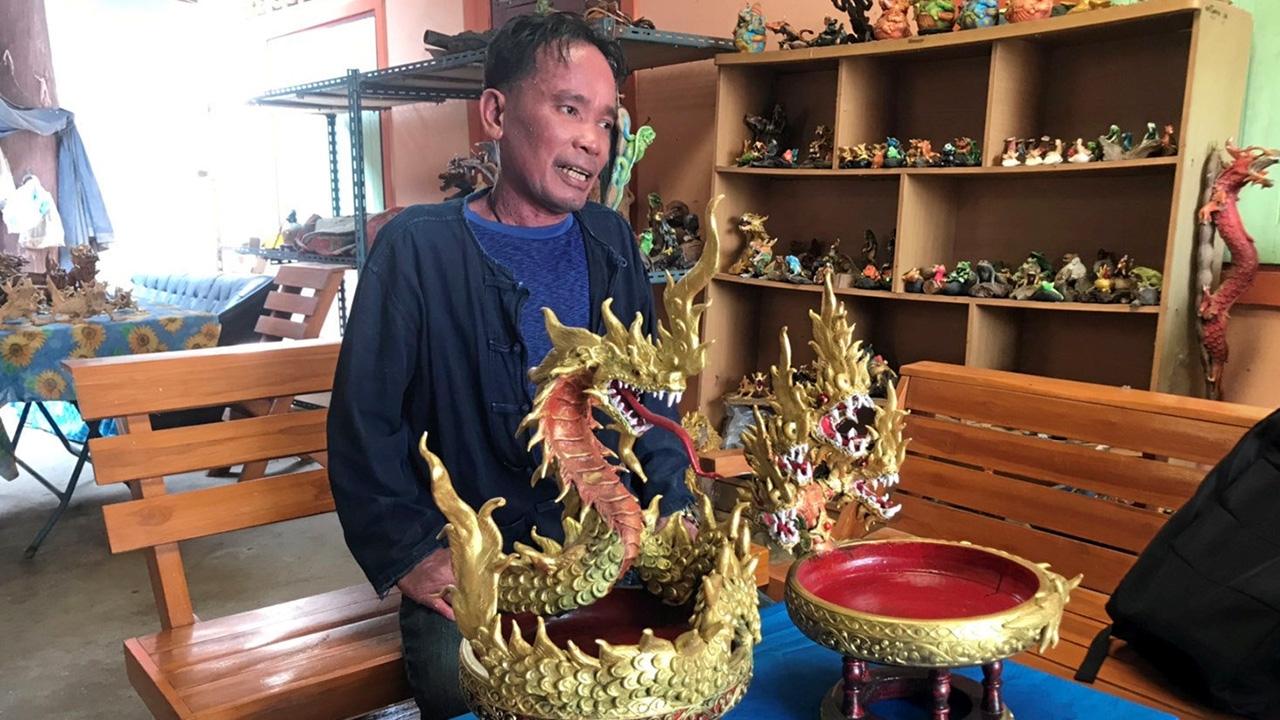 ปัจจุบันกระแส “พญานาค” กำลังเป็นที่โด่งดัง เพราะมีคนเคารพศรัทธานับถือและบูชาอย่างมากมาย โดยเฉพาะอย่างยิ่งการขอโชคลาภต่างๆ ประชาชนแห่ไปยังสถานที่ต่างๆที่มีรูปปั้นพญานาคตั้งอยู่ เพราะทุกคน ต่างเชื่อว่าพญานาคจะดลบันดาลโชคลาภ เจริญในหน้าที่การงาน การค้าขาย พญานาคจึงเป็นที่ยึดเหนี่ยวจิตใจของคนมาอย่างยาวนานเมื่อกระแสพญานาคมาแรง นายพุทธรักษ์ อุตรศรี หรือช่างตี๋ อายุ 44 ปี บ้านเลขที่ 91 หมู่ 2 ต.แม่ยางฮ้อ อ.ร้องกวาง จ.แพร่ เป็นช่างปั้นงานฝีมือดี ได้หันมาสนใจปั้นพญานาคด้วยขี้เลื่อยขาย จนได้รับการตอบรับจากลูกค้าเป็นอย่างดี ชนิดปั้นขายไม่ทัน ต้องจองกันล่วงหน้าเลยทีเดียวนายพุทธรักษ์ เปิดเผยว่า ครอบครัวเป็นช่างปั้นมาตั้งแต่รุ่นพ่อ อดีตปั้นกิ้งก่าติดกับกิ่งไม้สักแต่ขายได้เรื่อยๆ จนกระทั่งผ่านมายุคคนจีนนิยมมังกร เปลี่ยนมาปั้นมังกรตามขนาดที่สั่งสร้างรายได้ระดับหนึ่ง ต่อมาหันมาปั้นนกอินทรี แบบห้อยตามบ้านหรือสถานที่ต่างๆ ลักษณะกระพือปีกบินได้ แต่ก็พอขายได้ปัจจุบันเห็นว่าคนไทยนิยมบูชาพญานาค ทดลองปั้นพญานาคลงขายทางออนไลน์ เช่น เฟซบุ๊ก อินสตาแกรม และทางไลน์ ปรากฏว่ามีคนเห็นต่างสั่งทำกันเป็นจำนวนมาก จนทำไม่ทันเพราะงานแต่ละชิ้นเป็นงานฝีมือสำหรับวิธีการทำจะใช้ขี้เลื่อยละเอียดของไม้ยางพาราผสมกับกาวขาวผสมกันจนเหนียว จากนั้นก็ปั้นตามแบบและตามขนาดที่ลูกค้าสั่ง งานบางชิ้นต้องใช้เวลา 7-15 วัน แล้วแต่ความยากง่าย บางคนต้องการพญานาค 5 เศียร 7 เศียร หรือ 9 เศียร ส่วนราคาจะเริ่มตั้งแต่ 1,000-30,000 บาท แล้วแต่ขนาดและความยากนับว่าเป็นอีกช่องทางหนึ่งสร้างรายได้อย่างงาม โดยเฉพาะอย่างยิ่งช่วงที่มีการแพร่ระบาดไวรัสโควิด-19 สำหรับผู้สนใจต้องการสั่งงานปั้นพญานาค หรือรูปปั้นแบบอื่นๆ โทร. 09–7968–1326 หรือเฟซบุ๊ก งานปั้นขี้เลื้อยตี๋.ธวัชชัย ถนอม