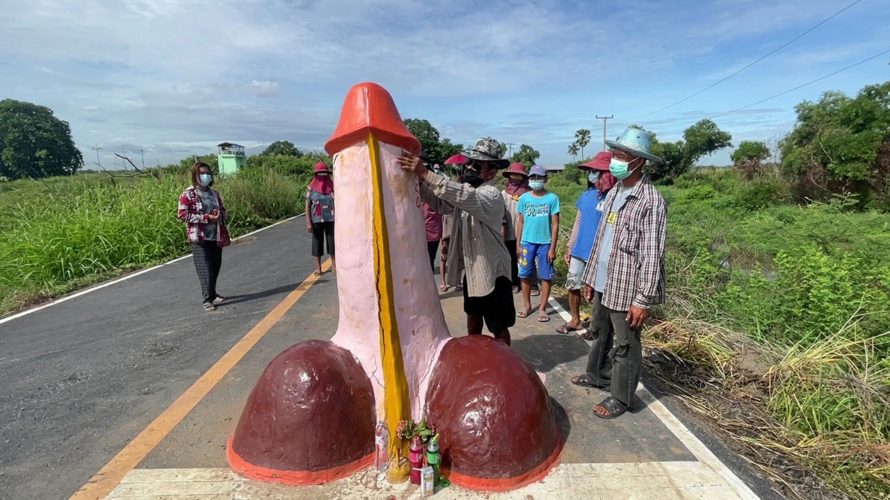 ศิวลึงค์ยักษ์ตั้งตระหง่านอยู่กลางถนนบริเวณประตูระบายน้ำคลอง 20 หมู่ 6 ต.โยธะกา อ.บางน้ำเปรี้ยว จ.ฉะเชิงเทรา ชาวเน็ตดราม่าหวั่นเกิดอุบัติเหตุ ผญบ. ชี้แจงเป็นความเชื่อชาวบ้านในพื้นที่ทำพิธีขอฝนให้นาข้าว ยืนยันถนนทางตันไม่มีรถผ่าน ขออนุญาตกรมชลประทานแล้ว.
