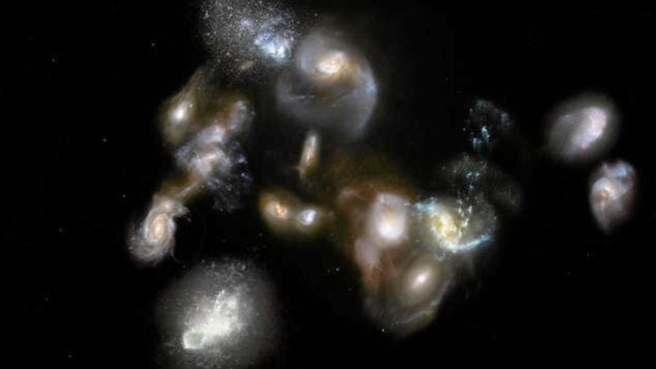 มีดาราจักรหรือกาแลกซีชนิดหนึ่งที่เรียกว่า Submillimeter galaxies (SMGs) เป็นกาแล็กซีที่มีการก่อตัวของดวงดาวอย่างรวดเร็ว อยู่แสนไกล และส่องสว่างที่สุด โดยส่องแสงได้สว่างกว่าดวงอาทิตย์หลายล้านล้านดวง หรือว่ากันตามตรงก็คือ โดยรวมแล้วมีแสงสว่างมากกว่ากาแล็กซีทางช้างเผือกหลายร้อยเท่า แต่โดยทั่วไปแล้วจะตรวจจับได้ยาก เนื่องจากแสงอัลตราไวโลเอตและแสงที่มองเห็นด้วยสายตาส่วนใหญ่จะถูกดูดกลืนโดยฝุ่นโดยทั่วไปแล้วกาแล็กซีชนิด SMGs จะเกิดขึ้นในเอกภพยุคแรก พวกมันอยู่ไกลมากจนแสงจากกาแล็กซีใช้เวลาเดินทางมาถึงเรานานกว่าหมื่นล้านปี หรือมากกว่า 70% ของอายุขัยของจักรวาล แต่ระยะของวิวัฒนาการในกาแล็กซีชนิดนี้ก็ยังเป็นปริศนา ล่าสุดนักดาราศาสตร์จากศูนย์ฟิสิกส์ดาราศาสตร์สมิธโซเนียน ในสหรัฐอเมริกา สามารถระบุถึงกาแล็กซี SMGs ที่ชื่อ SPT2349-56 ในกระจุกกาแล็กซีช่วงแรกรุ่นที่มีอายุน้อยกว่า 2-3 พันล้านปี จากการใช้การสังเกตใหม่ด้วยกล้องโทรทรรศน์อวกาศสปิตเซอร์ และกล้องโทรทรรศน์วิทยุขนาดยักษ์อัลมาได้กระจุกกาแล็กซีช่วงแรกรุ่นขนาดมหึมาแห่งนี้ มีกาแล็กซี SMGs อยู่ 14 แห่ง โดย 9 แห่ง ในนั้นตรวจพบด้วยแสงที่มองเห็นและอินฟราเรด จนสามารถประมาณการมวลดวงดาว อายุ ปริมาณก๊าซ รวมถึงความเป็นมาของการกำเนิดดวงดาวในกาแล็กซีเหล่านั้น ส่วนคุณสมบัติอื่นๆของกระจุกกาแล็กซีช่วงแรกรุ่นขนาดยักษ์ดังกล่าว พบว่ามวลรวมอยู่ที่ราวๆหนึ่งล้านล้านของมวลดวงอาทิตย์ เหล่ากาแล็กซีของมันกำลังก่อเกิดดวงดาวคล้ายกับกระบวนการก่อตัวดวงดาวในเอกภพปัจจุบัน ซึ่งมวลน่าจะอยู่ในช่วงการควบรวมครั้งใหญ่.(Credit : ESO/M. Kornmesser)