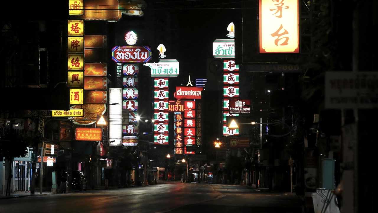 บรรยากาศการใช้มาตรการเคอร์ฟิว ห้ามออกเคหสถานช่วง 21.00-04.00 น. คืนแรกใน กทม. ทำให้ถนนต่างโล่งไร้รถรา รวมถึงเยาวราช ย่านธุรกิจและแหล่งของกินยามค่ำของคนกรุงที่เงียบเหงา อย่างไม่เคยเป็นมาก่อน.