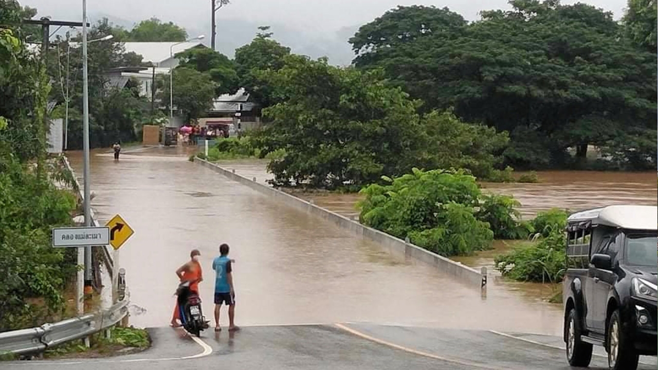 ฝนถล่มหนักต่อเนื่อง ทำให้แม่น้ำเมยล้นทะลักท่วมขยายวงไป 4 อำเภอ บ้านเรือนราษฎรได้รับผลกระทบนับพันหลังคาเรือน ฝ่ายปกครอง ทหารและหน่วยกู้ภัยเร่งลงพื้นที่ช่วยเหลือชาวบ้านขนย้ายทรัพย์สิน ที่ อ.แม่น้ำมาด น้ำจากภูเขาไหลลงลำห้วยแม่ละเมา ระบายสู่แม่น้ำเมยไม่ได้ ทำให้ล้นเอ่อท่วมบ้านเรือนประชาชนกว่า 1 เมตร ทหารพรานนำเรือช่วยขนย้ายชาวบ้านพื้นที่เสี่ยงไปอยู่ที่ปลอดภัย กำแพงเพชรคอสะพานเก่ากว่า 30 ปีพังถล่ม รถราไม่สามารถผ่านได้ พิษณุโลกน้ำท่วม 2 อำเภอ 46 หมู่บ้าน กรมอุตุนิยมวิทยาเตือนยังมีฝนตกหนักในพื้นที่ภาคเหนือ ภาคกลาง และภาคตะวันออก อาจเกิดน้ำท่วมฉับพลันและน้ำป่าไหลหลากได้สถานการณ์น้ำท่วมพื้นที่ชายแดน จ.ตาก หลังเกิดฝนตกต่อเนื่องร่วม 1 สัปดาห์ ทำให้แม่น้ำเมยเอ่อล้นท่วมตลาดริมเมย ต.ท่าสายลวด อ.แม่สอด ระดับน้ำสูงเกือบ 1 เมตร พ่อค้าแม่ค้าต้องเร่งขนย้ายสินค้าไปไว้ในที่ปลอดภัย ขณะที่บ้านเรือนประชาชนริมแม่น้ำเมยยังไม่ได้รับผลกระทบมากนัก แต่สถานการณ์กลับทวีความรุนแรงขึ้นเนื่องจากคืนที่ผ่านมาฝนตกตลอดทั้งคืน โดยเมื่อตอนสายวันที่ 28 ก.ค. ระดับน้ำในแม่น้ำเมยเพิ่มสูงกว่าเมื่อวานร่วม 1 เมตร ทำให้น้ำท่วมสูงเกือบ 2 เมตร โดยเฉพาะหมู่บ้านเป็นพื้นที่ลุ่มต่ำริมแม่น้ำเมยน้ำท่วมสูง 50-100 ซม. การไฟฟ้าส่วนภูมิภาคอำเภอแม่สอดต้องตัดกระแสไฟฟ้าในพื้นที่น้ำท่วมสูงป้องกันอันตราย ขณะที่เจ้าหน้าที่ฝ่ายปกครองอำเภอแม่สอด ทหาร พร้อมหน่วยกู้ภัยแม่สอด นำเรือเข้า ช่วยเหลือชาวบ้านที่ติดค้างอยู่ภายในบ้านตลอดแนวตลิ่ง ขณะที่พื้นที่ลุ่มต่ำริมแม่น้ำเมยใน อ.แม่ระมาด อ.ท่าสองยาง และ อ.พบพระ ได้รับผลกระทบถูกน้ำท่วมไปตามๆกัน โดยเฉพาะพื้นที่ อ.แม่ระมาด มีบ้านเรือนประชาชนได้รับผลกระทบ 670 หลังคาเรือน ประมาณ 1,500 คน โดยเฉพาะหมู่บ้านวังผา หมู่ 4 ต.แม่จะเรา น้ำฝนจากภูเขาไหลลงลำห้วย-แม่ละเมา เป็นลำห้วยขนาดใหญ่ไหลผ่านหลายตำบล ไม่สามารถระบายลงแม่น้ำเมยได้เนื่องจากน้ำล้นตลิ่ง ทำให้น้ำในลำห้วยแม่ละเมาล้นทะลักท่วมสะพานข้ามลำห้วยและถนนทางเข้าออกหมู่บ้าน จนรถเล็กไม่สามารถผ่านได้ และน้ำยังไหลท่วมบ้านเรือนประชาชนติดแนวลำห้วยแบบฉับพลันร่วม 100 หลังคาเรือน ระดับน้ำสูง 80-150 ซม. เจ้าหน้าที่ทหารพราน ฉก.ทพ.ที่ 35 ลุยน้ำเชี่ยวกรากเข้าไปช่วยเหลือชาวบ้านขนย้ายทรัพย์สินไว้ที่สูง นำเรืออพยพชาวบ้านในพื้นที่เสี่ยงไปไว้ในที่ปลอดภัยที่ จ.กำแพงเพชร ที่มีฝนตกติดต่อกันหลายวัน จู่ๆสะพานข้ามคลองวังอ้อ รอยต่อระหว่างหมู่ที่ 11 บ้านวังเพชร หมู่ 11 กับบ้านใหม่ศรี