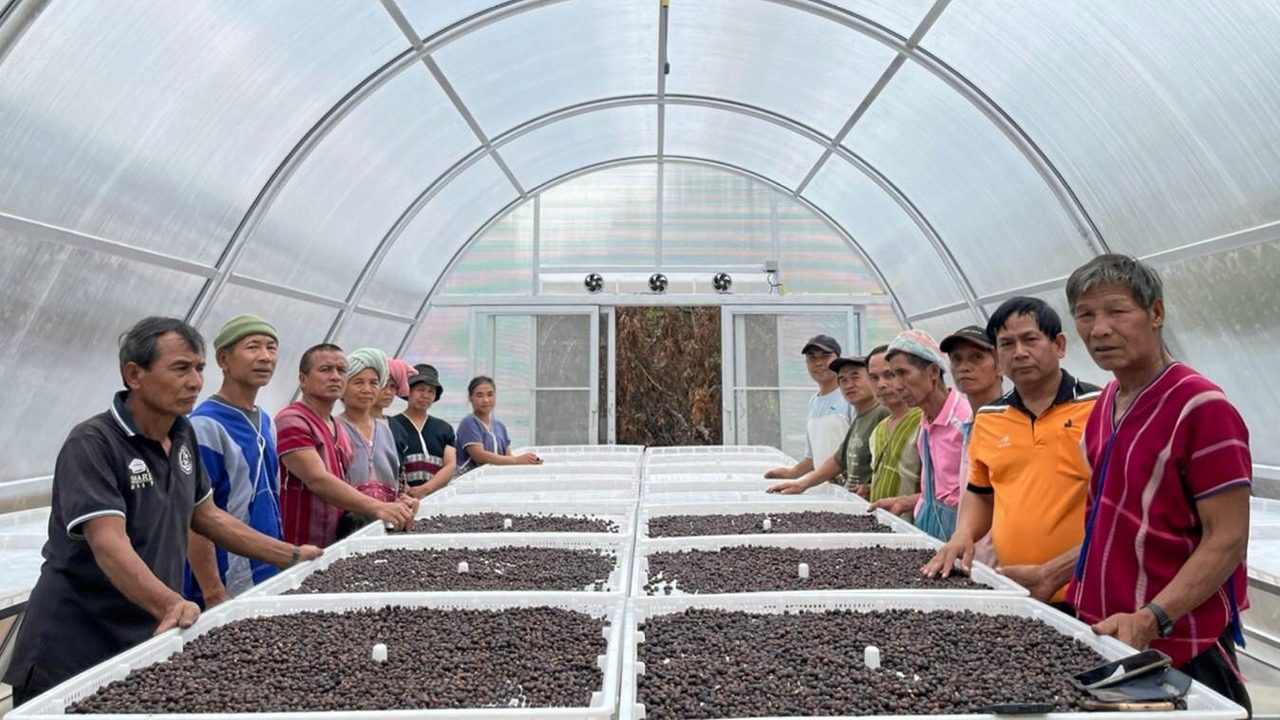 การตากเมล็ดกาแฟให้แห้งของเกษตรกรบนพื้นที่สูงทางภาคเหนือ นิยมใช้วิธีการแบบดั้งเดิม นอกจากจะมีปัญหาพื้นที่มีจำกัด หาลานขนาดใหญ่ไม่ค่อยได้ ใช้เวลานานหลายวัน ยังมีปัญหาฝนตก แมลงรบกวน เกิดเชื้อรา ทำให้ผลผลิตมีคุณภาพต่ำ ขายได้ราคาถูกผศ.ดร.บุศรากรณ์ มหาโยธี มหาวิทยาลัยศิลปากร หัวหน้าโครงการวิจัยภายใต้ทุนสนับสนุนการวิจัยจากสำนักงานการวิจัยแห่งชาติ (วช.) เผยว่า เพื่อแก้ปัญหาให้กับเกษตรกรผู้ปลูกกาแฟบนพื้นที่สูง นักวิจัยได้นำ พาราโบลาโดม ที่ถูกใช้อย่างกว้างขวางกับผลิตภัณฑ์อบแห้งหลายชนิด มาทดลองใช้ ปรากฏว่า พาราโบลาโดมที่เหมาะสมกับพื้นที่จำกัดบนดอย ต้องมีขนาดพื้นที่ฐานกว้าง 3.0 ม. ยาว 6.2 ม. จึงสามารถช่วยแก้ไขปัญหาและต่อยอดผลิตภัณฑ์เมล็ดกาแฟได้ดี “จากการนำไปติดตั้งให้กับกลุ่มวิสาหกิจชุมชนบ้านห้วยไม้ดำ กลุ่มเกษตรกรบ้านหนองขาวกลาง และวิสาหกิจชุมชนเกษตรกรบ้านหนองขาวเหนือ ต.ห้วยปูลิง อำเภอเมืองแม่ฮ่องสอน จ.แม่ฮ่องสอน เราพบว่าการอบด้วยพาราโบลาโดม ทำให้ได้ผลลัพธ์เป็นกาแฟ และใช้เวลาอบแห้งเพียง 3 วัน ลดลงจากเดิมเหลือแค่ 1 ใน 3 เท่านั้น ที่สำคัญยังทำให้ได้เมล็ดกาแฟอาราบิกาอบแห้งคุณภาพพิเศษ ที่เรียกว่า Honey Process ช่วยรักษารสชาติของกาแฟไว้ได้เป็นอย่างดี และทำให้ขายได้ในราคาที่สูงกว่าเดิมหลายเท่า เป็นการส่งเสริมเกษตรกรที่ปลูกกาแฟแบบ Shade-Grown Coffee ซึ่งเป็นการทำเกษตรแบบอนุรักษ์ป่าอีกทางหนึ่ง”ดร.บุศรากรณ์ เผยอีกว่า การเลือกใช้พาราโบลาโดมมาแก้ปัญหาให้กับเกษตรกรบนพื้นที่สูง เพราะนวัตกรรมที่มีกระบวนการไม่ซับซ้อน เป็นไปแบบนวัตวิถี เหมาะต่อการใช้งานของเกษตรกร โดยวางเป้าหมายการขยายผลด้านการเผยแพร่ความรู้ไปยังเกษตรกรบนพื้นที่สูงมากยิ่งขึ้น หากได้รับการสนับสนุนจากหน่วยงานที่มีความรู้ความเชี่ยวชาญ จะสามารถร่วมกันอบรมต่อยอดนวัตกรรมนี้ต่อไปได้อย่างมีประสิทธิภาพ อาทิ เกษตรกรเกิดการแปรรูปผลิตภัณฑ์อื่นตามมา เกิด Local Enterprise และการซื้อขายที่เป็นธรรมต่อเกษตรกร สร้างโมเดลภาคธุรกิจชุมชนที่มั่นคงต่อไป ทั้งนี้ ระบบพาราโบลาโดม อบแห้งด้วยพลังงานแสงอาทิตย์ มีโครงสร้างแบบเรือนกระจก (Greenhouse) เป็นรูปทรงพาราโบลา ปิดคลุมด้วยแผ่นโพลีคาร์บอเนต เพื่อให้เกิดหลักการเรือนกระจก เมื่อรังสีดวงอาทิตย์ผ่านแผ่นโพลีคาร์บอเนตไปยังผลิตภัณฑ์ในชั้นวาง บางส่วนจะตกกระทบพื้นของระบบอบแห้ง ทำให้ภายในระบบอบแห้งมีอุณหภูมิสูงขึ้น รังสีอินฟราเรดในแสงแดดจะถูกเก็บกักไว้ภายในโรงเรือน เนื่องจากไม่สามารถผ่านแผ่นโพลีคาร์บอเนตออกไปได้ อุณ