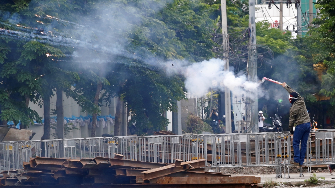 ผู้ชุมนุมคนหนึ่งใช้พลุไฟเป็นอาวุธยิงเข้าใส่เจ้าหน้าที่ อคฝ. ที่ตั้งอยู่ในกองดุริยางค์ทหารบกใกล้สามเหลี่ยมดินแดง แต่สุดท้ายถูกเจ้าหน้าที่ออกมาตอบโต้ทั้งใช้รถน้ำแก๊สน้ำตาและกระสุนยางก่อนไล่จับกุมได้หลายคน
