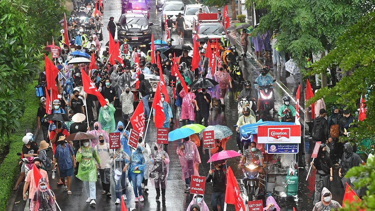 มวลชนกลุ่มรีเดมพร้อมแนวร่วมจัดชุมนุมแบบไร้แกนนำ “4 ก.ย. ถอนรากระบอบปรสิต” นัดตั้งขบวนกันบนถนนวิทยุ ด้านสถานทูตสวิตเซอร์แลนด์ เป้าหมายพระบรมราชานุสาวรีย์ ร.6 ในสวนลุมพินี ท่ามกลาง สายฝนที่ตกลงมาอย่างหนัก แต่ถูกตำรวจระดมกำลังหลายกองร้อย ตั้งแนวตู้คอนเทนเนอร์ และแนวรั้วลวดหนามสกัดทุกเส้นทาง.