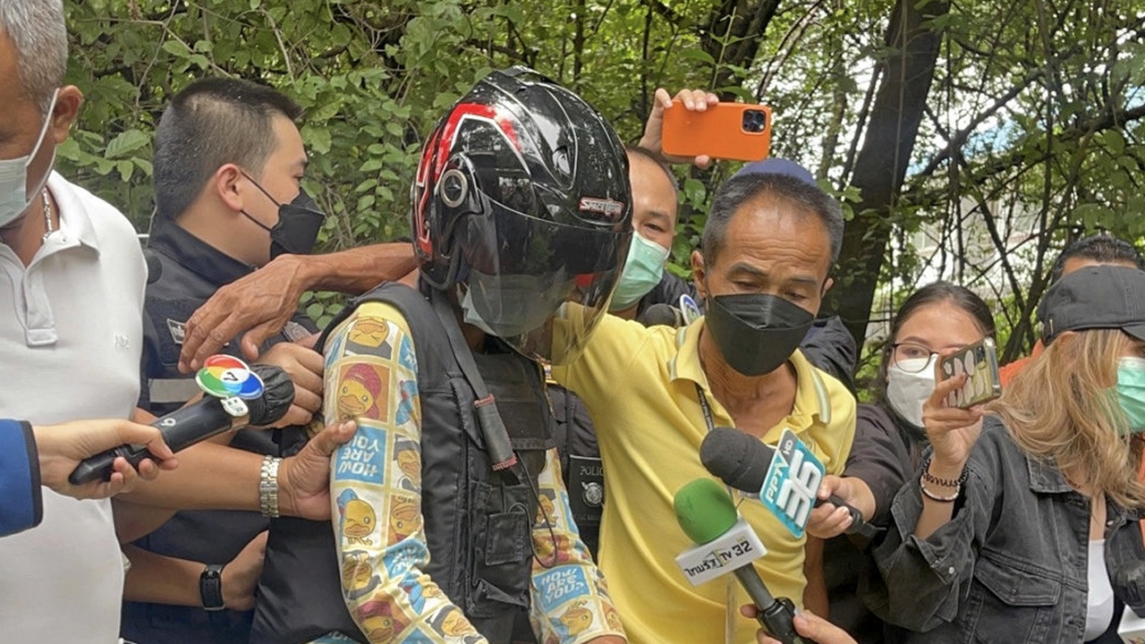 จนมุมแล้วเดนกามอำมหิตข่มขืนฆ่าหญิง ดาวน์ซินโดรมป่วยมะเร็งระยะสุดท้าย ที่แท้ เป็นผู้ต้องสงสัยที่ตำรวจนำตัวมาสอบสวนวันแรกก่อนปล่อยไป ได้หลักฐานเด็ด จากกล้องวงจรปิด เห็นรอยสักที่ขาเป็นหมัดน็อกดิ้นไม่หลุด สุดท้ายเปิดปากสารภาพ อ้างพี้กัญชาก๊งเหล้า จนเมาได้ที่ออกอุบายลวงเหยื่อออกจากบ้านมาจ้างนวด เกิดอารมณ์หื่นลงมือขยี้กามจนเสร็จกิจ เหยื่อจะหนีกลับเลยจับร่างเหวี่ยงหัวฟาดต้นไม้สลบเหมือด อุ้มโยนลงแอ่งน้ำก่อนลากขึ้นมานอนบนเนินดินแล้วหนีกลับบ้าน ตำรวจคุมตัวทำแผนฯ เครียดจัดลมชัก กำเริบถึงกับเป็นลมล้มพับคดีสะเทือนขวัญฆาตกรรมโหด น.ส.หมวย (นามสมมติ) อายุ 47 ปี หญิงดาวน์ซินโดรมป่วยเป็นมะเร็งลำไส้ระยะสุดท้าย ถูกข่มขืนฆ่าอยู่ริมแอ่งน้ำในป่าละเมาะใต้ทางด่วนอุดรรัถยา ปากซอยร่วมสุข 7/24 หมู่ 3 ต.บ้านใหม่ อ.เมืองปทุมธานี ตำรวจสอบสวนพยานพร้อมไล่กล้องวงจรปิดพบเบาะแสชายต้องสงสัยสวมชุดดำลวงผู้ตายออกจากบ้านไปก่อนจะพบเป็นศพ ล่าสุดจับกุมตัวเดนกามอำมหิตได้แล้วที่ สภ.ปากคลองรังสิต อ.เมืองปทุมธานี เมื่อเวลา 12.00 น. วันที่ 15 ก.ย. พล.ต.ต.ชยุต มารยาทตร์ ผบก.ภ.จ.ปทุมธานี พ.ต.อ.จตุพร คงเมือง ผกก.สภ.ปากคลองรังสิต พ.ต.ท.ชัยรัตน์ แย้มวงษ์ รอง ผกก.สส. พ.ต.ท.นิติธร ศุภชัยวรกุล สว.สส. ร่วมแถลงข่าวจับกุมตัวนายมารุธ หรือรุธ นนภิภักดิ์ อายุ 21 ปี อยู่บ้านเลขที่ 17/101 หมู่ 3 ต.บ้านใหม่ อ.เมืองปทุมธานี ตามหมายจับศาลจังหวัดปทุมธานี เลขที่ จ.110/2564 ลงวันที่ 15 ก.ย.64 ในข้อหาฆ่าผู้อื่นเพื่อปกปิดความผิดของตน พาผู้อื่นไปเพื่อการอนาจารโดยใช้อุบายหลอกลวง ขู่เข็ญ ใช้กำลังประทุษร้าย หรือใช้วิธีขืนใจด้วยวิธีอื่นใด ข่มขืนกระทำชำเราผู้อื่นโดยใช้กำลังประทุษร้ายเป็นเหตุให้ผู้อื่นถึงแก่ความตาย พร้อมของกลาง เสื้อคอโปโลสีน้ำเงินเข้ม กางเกงขาสามส่วนสีดำ กระเป๋าสะพายเฉียงคาดบ่า ที่ผู้ต้องหาใส่ในวันเกิดเหตุ เสื้อยืดคอโปโลแขนยาวสีน้ำตาล กางเกงขาสามส่วนสีเขียว ที่สวมใส่วันไปดูศพ รองเท้าแตะ และเสื้อเชิ้ตลายดอกของผู้ตายพล.ต.ต.ชยุต เผยพฤติการณ์ในการจับกุมว่า เมื่อวันที่ 13 ก.ย. เวลาประมาณ 18.30 น. พนักงานสอบสวน สภ.ปากคลองรังสิต ได้รับแจ้งจากนางพร (นามสมมติ) อายุ 64 ปี ว่า น.ส.หมวย (นามสมมติ) อายุ 47 ปี น้องสาวเป็นดาวน์ซินโดรมหายออกไปจากบ้าน ต่อมาเวลา 22.00 น.วันเดียวกัน พบศพ น.ส.หมวย บริเวณแอ่งน้ำในป่าละเมาะใต้ทางด่วนใกล้ปากซอยร่วมสุข 7/24 ต.บ้านใหม่ อ.เมืองปทุมธานี นำศพส่งชันสูตรแพทย์ระบุว่าผู้ตายถูกฆาตกรรม สภาพศพคอหัก มีร่องรอยถูกข่มขืนกระทำชำเรา เจ้าหน้าที่ชุดสืบสวนระดมเร่งหาข้อ