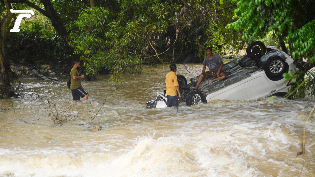 ฝนถล่มน้ำป่าซัดหนุ่มชะตาขาดขณะขับรถเก๋งฝ่าน้ำท่วมฝายน้ำล้นจมน้ำดับสยอง ช่วงเช้าออกไปดูไร่ ตกเย็นเกิดฝนตกหนัก ระหว่างวิ่งผ่านฝายน้ำล้นที่มีน้ำท่วมสูงไหลเชี่ยวกรากถูกกระแสน้ำหอบทั้งรถทั้งคนไปกระแทกต้นไม้กระจกแตก ผู้ตายพยายามมุดออกจากรถโดนกระจกบาดคอ แต่หนีออกมาไม่ทันจมน้ำเสียชีวิตคาซากเหตุการณ์น้ำป่าซัดรถเก๋งหนุ่มตกฝายน้ำล้นดับคาซาก เปิดเผยช่วงกลางดึกวันที่ 19 ก.ย. ร.ต.อ.นฤชัย พายสำโรง รอง สว. (สอบสวน) สภ.วัฒนานคร จ.สระแก้ว รับแจ้งมีรถเก๋งถูกน้ำป่าซัดตกฝายน้ำล้นคลองบ้านห้วยโจด หมู่ 1 ต.ห้วยโจด ไปตรวจสอบพร้อม พ.ต.อ.สาธิต มิตรรัก ผกก.สภ.วัฒนานคร และหน่วยกู้ภัยมูลนิธิร่วมกตัญญูสระแก้วที่เกิดเหตุเป็นฝายเก่า พบรถเก๋งนิสสัน โน้ต สีขาว ทะเบียน 6 กพ 8632 กรุงเทพมหานคร ถูกกระแสน้ำเชี่ยวกรากซัดตกลงไปในฝายน้ำไปติดอยู่ที่ต้นไม้ ในสภาพหงายท้องล้อชี้ฟ้าห่างจากฝายน้ำล้นประมาณ 20 เมตร ภายในรถพบร่างผู้เสียชีวิตติดอยู่บริเวณเบาะหลัง หน่วยกู้ภัยช่วยกันงัดกระจกรถนำศพออกมาอย่างทุลักทุเล ทราบชื่อนายเสน่ห์ ถาวรสุขเจริญ อายุ 45 ปี ชาว อ.วังน้ำเย็น จ.สระแก้ว บริเวณลำคอมีบาดแผลลึก สันนิษฐานว่าถูกกระจกบาดระหว่างพยายามมุดหนีออกจากรถ เจ้าหน้าที่นำไปชันสูตรที่โรงพยาบาลวัฒนานคร เบื้องต้นคาดว่าน่าจะเสียชีวิตจากการจมน้ำจากการสอบสวนทราบว่า นายเสน่ห์มีบ้านอยู่ใน อ.วังน้ำเย็น เพิ่งย้ายมาทำไร่อยู่ในพื้นที่บ้านห้วยโจดไม่นาน ช่วงเช้าวันที่ 19 ก.ย.ที่ผ่านมา ผู้ตายขับรถเข้าไปในไร่ ระหว่างทางต้องขับผ่านฝายน้ำล้นที่มีน้ำไหลท่วมขังเส้นทางจากปัญหาฝนตกสะสมติดต่อกันหลายวัน กระทั่งเย็นฝนตกหนักหลายชั่วโมง ทำให้น้ำป่าไหลหลากเข้าท่วมพื้นที่เพิ่มสูงขึ้น คาดว่าระหว่างผู้ตายขับรถผ่านฝายน้ำล้นที่น้ำท่วมสูงและไหลเชี่ยวซัดรถตกฝายน้ำไปติดต้นไม้จนกระจกแตก ผู้ตายพยายามมุดหนีออกมาถูกกระจกบาด แต่หนีไม่ทันจมน้ำเสียชีวิตคารถต่อมาช่วงสายวันที่ 20 ก.ย. พ.ต.อ.สาธิต มิตรรัก ผกก.สภ.วัฒนานคร ประสานหน่วยกู้ภัยนำรถไถนาขนาดใหญ่มายกรถเก๋งของผู้ตายขึ้นมาจากฝายน้ำล้นท่ามกลางกระแสน้ำไหลเชี่ยวกรากจากนั้นเปิดเผยว่า เหตุการณ์ที่เกิดขึ้นเป็นเรื่องของอุบัติเหตุ ผู้ตายย้ายมาอยู่หมู่บ้านแห่งนี้ไม่นาน ก่อนเกิดเหตุขับรถออกมาจากไร่ผ่านฝายน้ำล้นและถูกน้ำป่าซัด ขณะนี้อยู่ระหว่างรอญาติมารับศพไปบำเพ็ญกุศลที่บ้านใน อ.วังน้ำเย็น