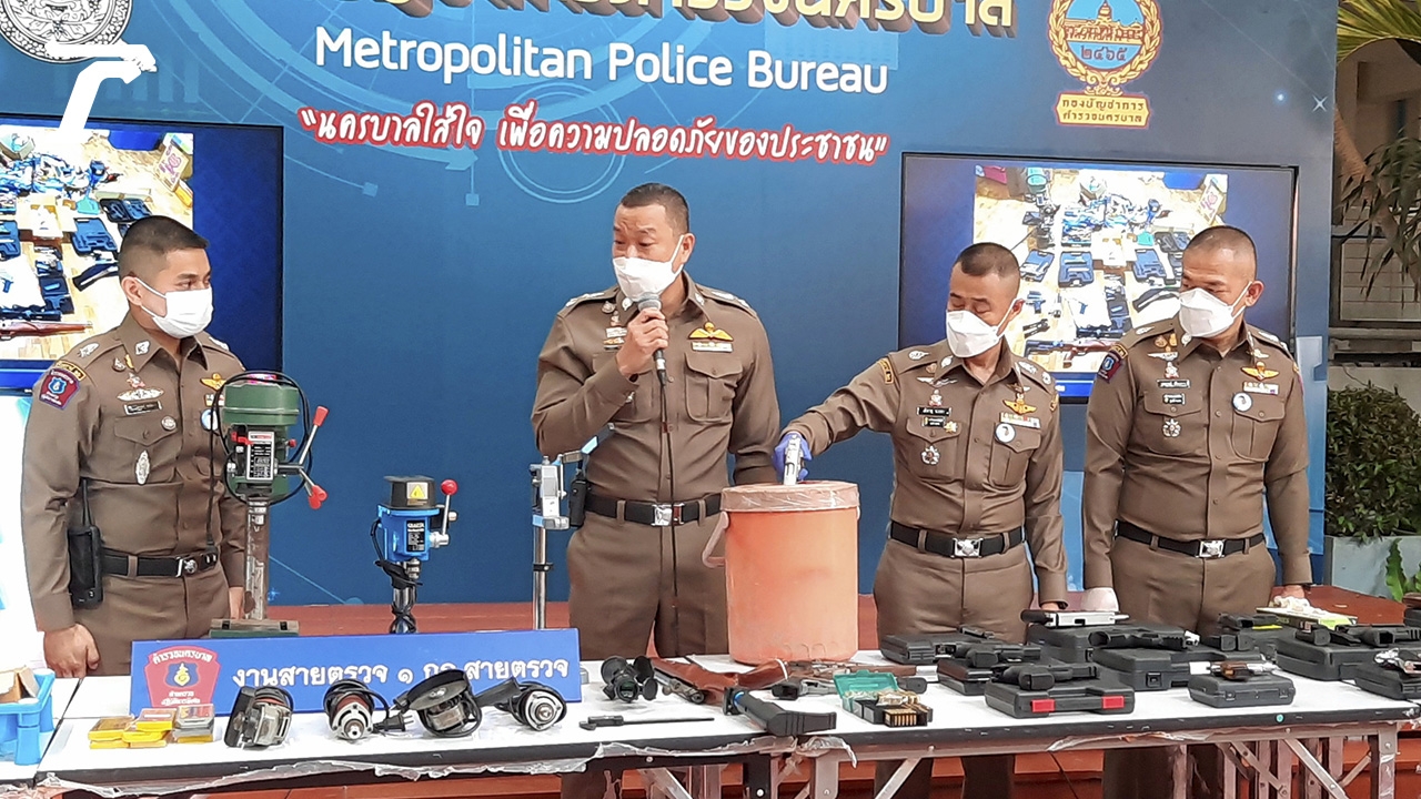191 จับโชเฟอร์รถบรรทุก 10 ล้อ พร้อมเมียและลูกเลี้ยงผลิตปืนเถื่อนขายทางอินเตอร์เน็ตส่งของ ให้ลูกค้าทางพัสดุพร้อมของกลางปืน 6 ชนิด รวม 19 กระบอก กระสุนปืนอีกเพียบและอุปกรณ์ต่างๆ หัวใสซื้อโมเดลปืนมาดัดแปลงโดยเอาประสบการณ์จากที่เคยทำงานโรงกลึงมาใช้ ประดิษฐ์ได้ตกเดือนละ 10 กระบอก ขายกระบอกละหมื่นบาท แถมโดนจับมาแล้ว 1 ครั้ง ส่วนลูกค้าล้วนเป็นชาวกรุงชุดจับกุมเตรียมขยายผลตามจับคนซื้อมาดำเนินคดีรวบครอบครัวคนขับรถสิบล้อประกอบปืนเถื่อน ขายในออนไลน์ เปิดเผยขึ้นที่กองบัญชาการตำรวจ นครบาล (บช.น.) เมื่อเวลา 11.00 น. วันที่ 16 ต.ค. พล.ต.ท.สำราญ นวลมา ผบช.น. พล.ต.ต.นิธิธร จินตกานนท์ รอง ผบช.น. แถลงข่าว พล.ต.ต.สมบูรณ์ เทียนขาว ผบก.สปพ. พ.ต.อ.ประสงค์ อานมณี รอง ผบก.สปพ. พ.ต.อ.ศุภวัช ปานแดง รอง ผบก.สปพ. จับกุมนายกรกช กองศรี อายุ 45 ปี นางจิราพร เขียวไสว อายุ 47 ปี และนายจิตริน เขียวไสว อายุ 29 ปี ภรรยาและลูกเลี้ยงของนายกรกช พร้อมของกลาง ปืนดัดแปลงขนาด .380 จำนวน 12 กระบอก ปืนลูกโม่ ขนาด .38 จำนวน 2 กระบอก ปืนกึ่งอัตโนมัติ ยี่ห้อ ราม่า 1 กระบอก ปืนไทยประดิษฐ์หักลำกล้อง ขนาด .22 จำนวน 1 กระบอก ปืนยาว .22 จำนวน 2 กระบอก ปืนลูกซองสั้น .22 จำนวน 1 กระบอก รวม 19 กระบอก กระสุนปืนรวม 603 นัด ท่อเก็บเสียง 2 อัน สว่านไฟฟ้า หินเจียร เลื่อยตัดเหล็ก จับนายกรกช ได้ที่ 48/1 ม.2 ต.คลองพระอุดม อ.ลาดหลุมแก้ว จ.ปทุมธานี จับนางจิราพรและนายจิตรินได้ที่ปั๊มน้ำมัน สาขาถนนชัยพฤกษ์ อ.ปากเกร็ด จ.นนทบุรี ตอนบ่าย วันที่ 15 ต.ค.ที่ผ่านมาสืบเนื่องจาก พ.ต.ต.ไพบูลย์ สอโส สว.งานสายตรวจ 1 กก.สายตรวจ บก.สปพ. ขยายผลจากคดี จับกุมพ่อค้าอาวุธสงคราม เมื่อวันที่ 30 ก.ย. หลังตรวจสอบแหล่งซ่อมและดัดแปลงอาวุธปืนในโลกออนไลน์จนทราบว่า มีผู้ใช้เฟซบุ๊กชื่อว่า “Denver Nanato” ขายอาวุธปืนและรับจ้างซ่อมปืน จึงแกะรอย ติดตามจนทราบว่า นายกรกชเป็นแอดมินและผู้ติดต่อ ซื้อ-ขายปืน รวมทั้งมีไลน์กลุ่มชื่อ “เพื่อน Gun” ประมาณ 120 คน โดยให้นางจิราพร และนายจิตริน ลูกชายของนางจิราพร เป็นผู้นำปืนไปส่งให้ลูกค้าที่สั่งซื้อผ่านร้านส่งพัสดุเอกชนทั่วไป จากการตรวจค้นบ้านเลขที่ 48/1 ม.2 ต.คลองพระอุดม อ.ลาดหลุมแก้ว จ.ปทุมธานี บ้านของนายกรกชพบปืนและกระสุนปืนของกลางดังกล่าวพร้อมอุปกรณ์สำหรับผลิตปืนเถื่อนหลายรายการจากการสอบสวนนายกรกชกล่าวว่า ทำงานรับจ้างขับรถบรรทุก 10 ล้อ เคยถูกจับคดีขายอาวุธ ปืนเถื่อนทางออนไลน์เมื่อ 4-5 เดือนก่อน สาเหตุที่ผลิตอาวุธปืนได้เพราะใช้ความรู้จากเคยทำงานที่โรงกลึง โดยซื้อ Blank gun หรือโมเดลปืน หรือปืนจำลอง มาดัดแปลง ผลิตได้ตกเดือนละ 10 กระบอก ขายกระบอกล
