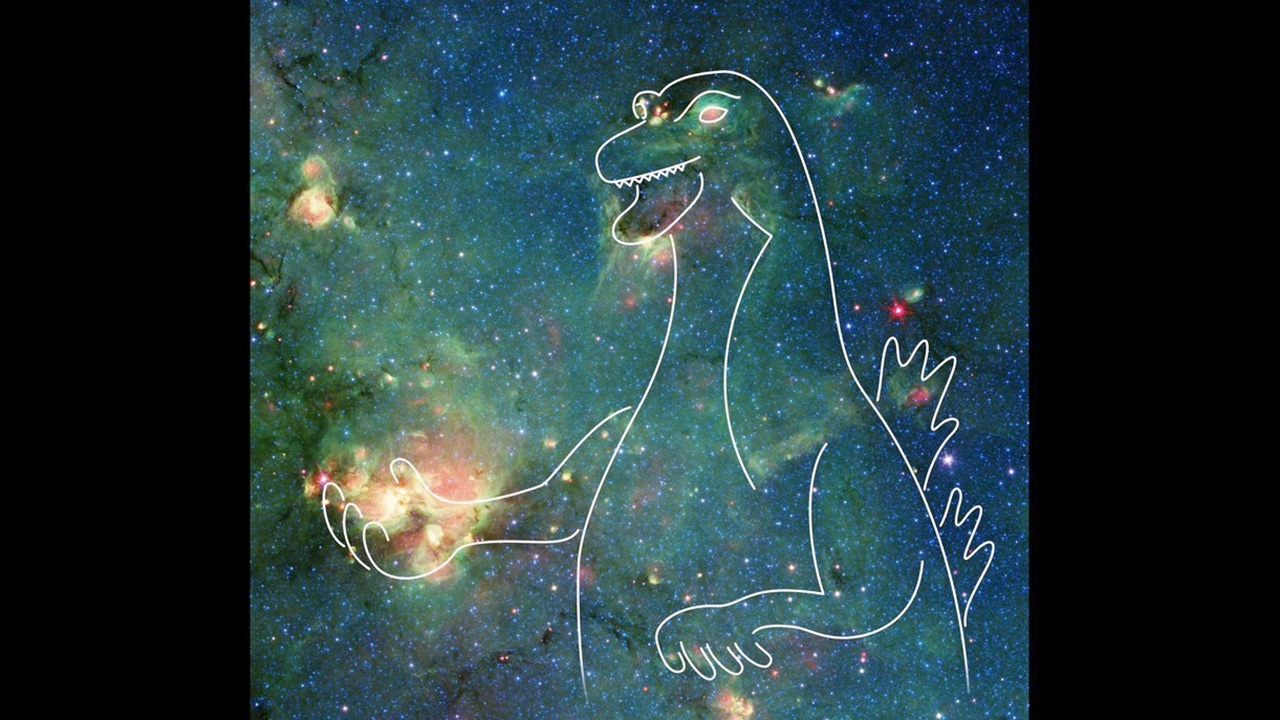 ทำไมดาราศาสตร์ถึงเป็นเรื่องสนุก? ความสนุกของการศึกษาเรื่องดวงดาว หรือวัตถุท้องฟ้าอื่นๆ ไม่ใช่แค่การค้นพบวัตถุหรือปรากฏการณ์ที่ท้าทายต่อการวิเคราะห์วิจัย แต่ยังหมายรวมถึงการก่อเกิดจินตนาการที่ทำให้สามารถขยายความเข้าใจในสิ่งที่ค้นพบได้อย่างมีมิติและเชื่อมต่อไปสู่คนที่สนใจอย่างกรณีภาพที่ถูกประมวลผลโดยโรเบิร์ต เฮิร์ต นักดาราศาสตร์จากสถาบันเทคโนโลยีแคลิฟอร์เนีย หรือแคลเทค ในสหรัฐอเมริกา ที่สร้างขึ้นจากคลังข้อมูลของกล้องโทรทรรศน์อวกาศสปิตเซอร์ขององค์การนาซา ที่ปลดระวางไปเมื่อต้นปีก่อน ภาพดังกล่าวเป็นเนบิวลาอันเป็นกลุ่มก๊าซและฝุ่นในอวกาศที่มีสีสันสวยงาม ชื่อ W33 อยู่ห่างจากโลกราว 7,800 ปีแสง ตั้งอยู่ในกลุ่มดาวคนยิงธนู ข้อมูลระบุว่ากว่าพันล้านปีที่แล้วมีดวงดาวนับไม่ถ้วนก่อตัวในเนบิวลาแห่งนี้ ซึ่งรังสีที่แผ่ออกมาจะแบ่งแยกก๊าซและฝุ่นออกไปทำให้เมฆก่อตัวใหม่ และยังมีการเปลี่ยนแปลงที่สำคัญคือเมื่อดาวมวลมากสิ้นอายุขัยก็จะระเบิดกลายเป็นซุปเปอร์โนวานักดาราศาสตร์เผยว่า ได้ลากเส้นเชื่อมต่อกันในบริเวณพื้นที่นั้นให้เป็นรูปของสัตว์ประหลาดชื่อดังของญี่ปุ่นนั่นคือ ก็อตซิลลา (Godzilla) โดยจุดสว่างบริเวณด้านบนของภาพดูเหมือนตาแหลมและจมูกยาวของก็อตซิลลา ส่วนปากจะเห็นว่ามันกำลังคำราม ซึ่งบริเวณสว่างด้านซ้ายล่างหรือที่มือขวาของก็อตซิลลาก็คือ W33 นั่นเอง และนี่เป็นหนึ่งในวิธีที่นักดาราศาสตร์ต้องการให้ผู้คนเชื่อมต่อกับผลงานอันน่าทึ่งของกล้องโทรทรรศน์อวกาศสปิตเซอร์.(ภาพประกอบ Credit : NASA/JPL-Caltech)