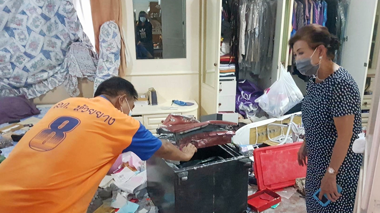 ตำรวจตรวจสอบตู้เซฟ หลังคนร้ายเข้าไปลักทรัพย์ บ้านของ น.ส.ทิพวรรณ ธรรมเสถียรสุข ในพื้นที่ อ.สามพราน จ.นครปฐม เจ้าของโรงงานกระดาษ งัดเหล็กดัดหน้าต่าง ลอดตัวเข้าไปขโมยทรัพย์สินมีทั้งเครื่องเพชร ทองรูปพรรณและเงินสดรวมมูลค่ากว่า 4 ล้านบาท.