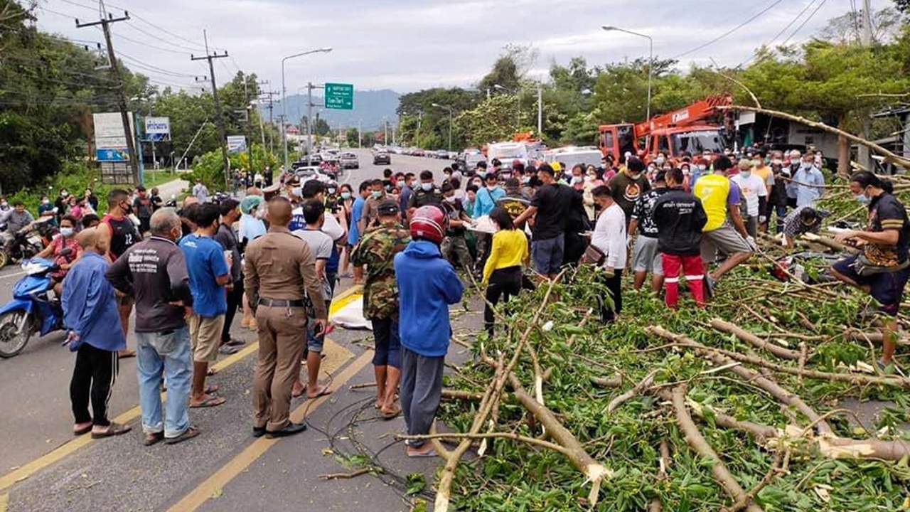 เจ้าหน้าที่ระดมเครื่องจักรเคลื่อนย้ายต้นเหรียง หรือต้นกะเหรี่ยง อายุร่วม 100 ปี หลังถูกลมพัดกระโชกแรง ทำให้กิ่งไม้ขนาดใหญ่หักโค่นลงมาทับบ้านพัง มีคนเจ็บ 2 คน และยังทับรถ จยย.ผู้เคราะห์ร้ายที่ขี่ผ่านมา 2 คัน ส่งผลให้มีผู้เสียชีวิต 3 ศพ เหตุเกิดเชิงเขาบ้านนางรอง หมู่ 3 ต.หินตั้ง อ.เมืองนครนายก.