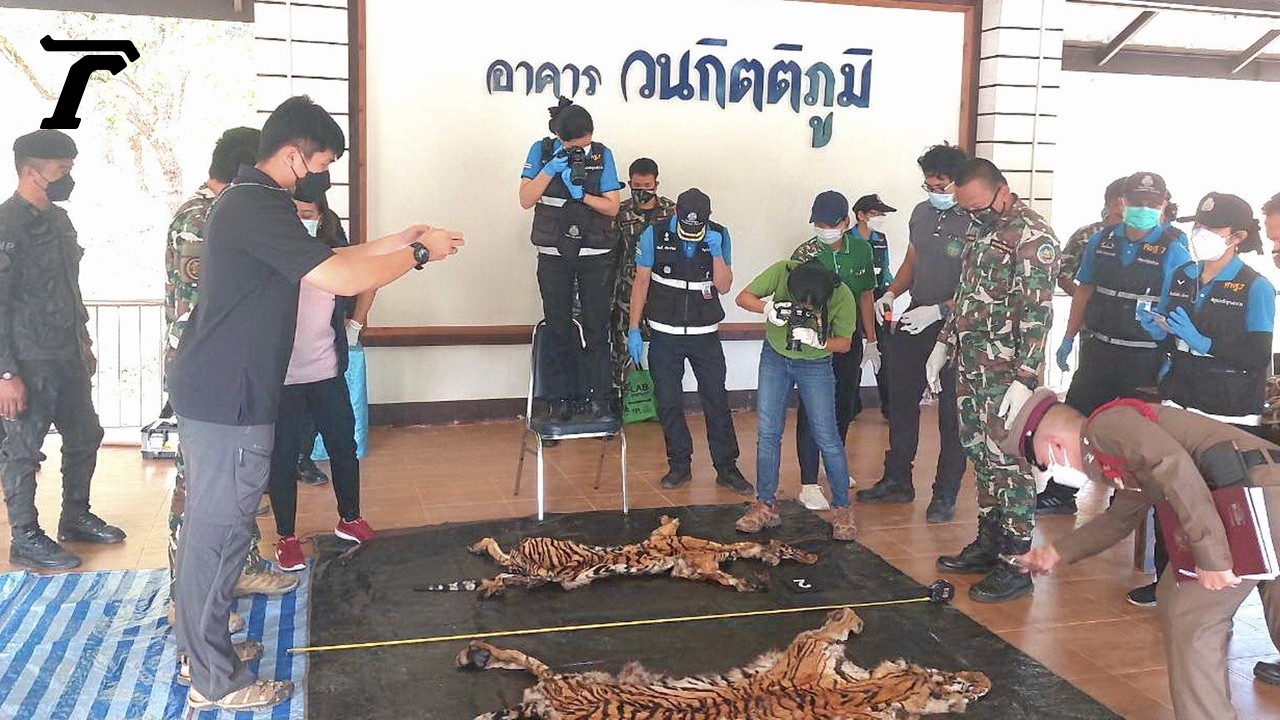 ลากคอได้แล้ว 5 นายพรานใจโหดฆ่าเสือโคร่ง 2 ตัว กลางป่าอุทยานฯทองผาภูมิ ใช้ซากวัวเป็นเหยื่อล่อซุ่มยิงปลิดชีพจับถลกหนัง ชำแหละเนื้อ เจ้าหน้าที่พิทักษ์ป่าลาดตระเวนไปพบทิ้งของกลางเผ่นหนี ก่อนติดต่อผู้ใหญ่บ้านพาเข้ามอบตัว อ้างปมแค้นเสือออกจากป่ามากัดกินวัวในหมู่บ้านช่วง 2 เดือนตายไปร่วม 20 ตัว ไม่รู้จะทำอย่างไรเลยไปซุ่มยิงทิ้ง ใช้ปืนแก๊ปยาวลั่นไกสังหาร ส่วนปืนลูกซองยาว 5 นัดที่เจ้าหน้าที่ยึดได้ยืมจาก อปพร.มาไว้ป้องกันตัว โดนแจ้งหลายข้อหาหนักตาม พ.ร.บ.ป่าสงวนฯ พ.ร.บ.อุทยานฯ และ พ.ร.บ.สงวนและคุ้มครองสัตว์ป่าฯจากเหตุการณ์เจ้าหน้าที่พิทักษ์ป่าอุทยานแห่งชาติทองผาภูมิ จ.กาญจนบุรี ลาดตระเวนไปพบกลุ่มนายพรานใจโหด 5 คนตั้งแคมป์นำซากวัวมาเป็นเหยื่อล่อ ซุ่มยิงเสือโคร่งตาย 2 ตัว นำมาแร่เนื้อถลกเอาหนัง ขณะจะเข้าจับกุมกลุ่มนายพรานไหวตัวทันวิ่งหลบหนีไปได้ ในที่เกิดเหตุพบแคร่นั่งร้านย่างเนื้อสัตว์ ซากเสือโคร่ง 2 ตัว เพศผู้กับเพศเมีย ปืน 4 กระบอก และอุปกรณ์การกระทำผิดอื่นๆ รวม 29 รายการ เหตุเกิดในป่าห้วยปิล๊อก หมู่ 4 ต.ปิล๊อก อ.ทองผาภูมิ ช่วงวันที่ 8-11 ม.ค. มีรายงานว่า หนึ่งในปืนที่ยึดได้เป็นปืนลูกซองยาวที่ใช้ในราชการ อปพร. มีคนโทรศัพท์มาเคลียร์ขอปืนคืน แต่เจ้าหน้าที่ชุดจับกุมปฏิเสธไปความคืบหน้าเมื่อช่วงเช้าวันที่ 13 ม.ค. ผู้สื่อข่าวรายงานว่า เจ้าหน้าที่นำซากเสือโคร่งถูกชำแหละแยกหนังทั้ง 2 ตัว รวมทั้งเนื้อเสือโคร่งที่ถูกหั่นเป็นชิ้นๆลักษณะคล้ายกับเนื้อแดดเดียวและของกลางทั้งหมดไปเก็บไว้ยังที่ทำการอุทยานแห่งชาติทองผาภูมิ เพื่อให้เจ้าหน้าที่พิสูจน์หลักฐานมาถ่ายภาพพร้อมเก็บตัวอย่างเพื่อนำไป ตรวจดีเอ็นเอใช้เป็นหลักฐานทางด้านนิติวิทยาศาสตร์ ขณะเดียวกันมีรายงานด้วยว่าปืนลูกซองยาว 5 นัดยี่ห้อวินเชสเตอร์ หมายเลขประจำปืน L1526415 หนึ่งในของกลางที่ตรวจยึดได้ในที่เกิดเหตุ เป็นปืนของเจ้าหน้าที่ อปพร. ทางหน่วยงานต้นสังกัดพยายามติดต่อขอความช่วยเหลือจากผู้ใหญ่ในพื้นที่ให้วิ่งเต้นเพื่อแจ้งความว่าปืนหายย้อนหลังด้วยต่อมาในช่วงเที่ยง ตำรวจได้รับการประสานจากนายอานนท์ ถนอมวงษ์ ส.อบจ.เขต อ.ทองผาภูมิ นายประสาท แดงเถิน ผู้ใหญ่บ้านหมู่ 4 ต.ปิล๊อก ว่าขอพาลูกบ้านที่กระทำผิดเข้ามอบตัวที่ สภ.ทองผาภูมิ แทน สภ.ปิล๊อก พ.ต.อ.สันติ พิทักษ์สกุล ผกก.สภ.ทองผาภูมิ นำกำลังตำรวจร่วมกับเจ้าหน้าที่อุทยานฯทองผาภูมิ นำรถตู้ไปรับตัวผู้ต้องหา 4 คนที่บริเวณจุดตรวจเชิงเขาบ้านไร่ ต.ปิล๊อก นำตัวมาสอบปากคำที่ สภ.ทองผาภูมิผู้ต้องหาทั้ง 4 คน ประกอบด้