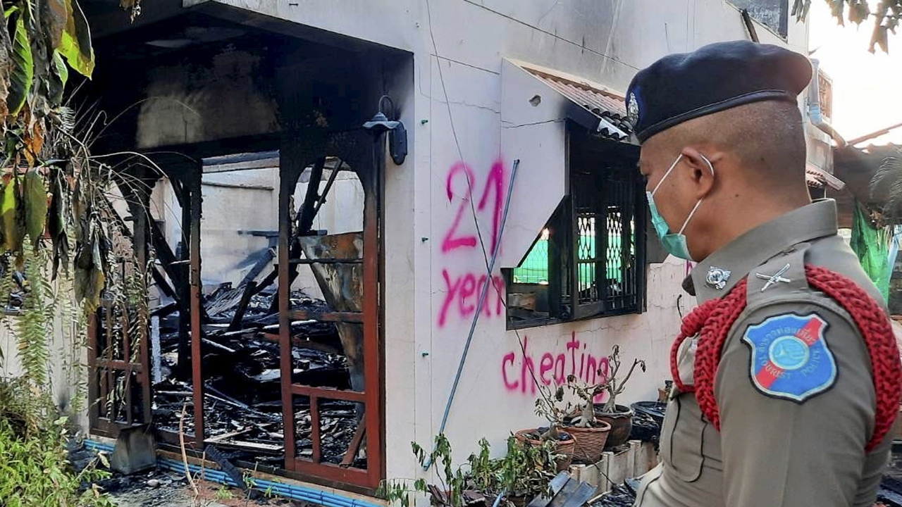 ฝรั่งเมืองเบียร์คลั่งเปิดถังแก๊สจุดไฟเผาบ้าน ก่อนผูกคอฆ่าตัวตายสยองคากองเพลิง เมียชาวไทยอยู่กินกันมานานกว่า 20 ปี มึนไม่รู้ชนวนเหตุ ก่อนหน้านี้เอาหลาน 2 คนมาเลี้ยงถูกสามีไล่ให้เอากลับบ้านเพราะไม่มีสมาธิทำงาน ภายหลังน้องชายสามีที่อยู่ต่างจังหวัดเสียชีวิตไม่ทราบสาเหตุ ขอให้กลับไปอยู่บ้านก่อนเพื่อจัดการเรื่องศพน้องชาย พ่นสีสเปรย์ระบายความในใจเต็มฝาผนังบ้านก่อนลงมือก่อเหตุ ตำรวจพุ่งปมน้อยใจเมียกับเครียดเรื่องการเสียชีวิตของน้องชายหนุ่มใหญ่ชาวเยอรมันจุดไฟเผาบ้านตัวเองก่อนผูกคอฆ่าตัวตายรายนี้เปิดเผยเมื่อเวลา 03.30 น. วันที่ 7 ก.พ. ร.ต.ท.สุทธิกรรณ์ เอี่ยมสำอางค์ รอง สว. (สอบสวน) สภ.เมืองกาญจนบุรี ได้รับแจ้งเหตุไฟไหม้บ้านเลขที่ 452 หมู่บ้านกาญจนบุรีวิลลา ต.ท่ามะขาม เขตเทศบาลเมืองกาญจนบุรี รายงานให้ผู้บังคับบัญชาทราบนำกำลังไปตรวจสอบที่เกิดเหตุเป็นบ้านปูน 2 ชั้นมีรั้วรอบขอบชิดพบไฟลุกไหม้อย่างรุนแรง มีนายวสันต์ ภูษิตกาญจนา นายกเทศตรีเมืองกาญจนบุรี นายเกรียงไกร จงเจริญ รองนายกเทศมนตรีเมืองกาญจนบุรี สั่งระดมรถดับเพลิงจากเทศบาลเมืองกาญจนบุรี เทศบาลตำบลท่ามะขาม เทศบาลตำบลท่าล้อ และเทศบาลเมืองปากแพรก รวมกว่า 10 คัน พร้อมประสานเจ้าหน้าที่ตัดกระแสไฟฟ้า เจ้าหน้าที่ดับเพลิงต้องพังประตูรั้วเข้าไปฉีดน้ำสกัดเปลวเพลิงที่ลุกไหม้ภายในบ้าน ใช้เวลาประมาณ 1 ชม. สามารถควบคุมเพลิงไว้ได้ แต่เผาผลาญบ้านวอดเกือบทั้งหลังหลังเพลิงสงบเข้าตรวจสอบภายในบ้านพบศพนายอูเว อัลเบร็คชท์ อายุ 63 ปี ชาวเยอรมันเจ้าของบ้าน ใช้ลวดสลิงรัดคอตัวเองแขวนอยู่กับขื่อในห้องครัวชั้นล่าง สภาพศพลิ้นจุกปาก ร่างกายถูกไฟคลอกไหม้เกรียมกว่า 80 เปอร์เซ็นต์ บนพื้นใกล้กันมีถังแก๊สหุงต้มขนาด 15 กก. วางอยู่ 3 ถังเปิดวาล์วทิ้งไว้ ส่วนบนชั้น 2 พบถังแก๊สหุงต้มขนาดเดียวกันวางอยู่อีก 2 ถังเปิดวาล์วเช่นกันมียางรถยนต์ครอบอยู่ และกระป๋องสีหลายกระป๋อง คาดว่าเป็นจุดต้นเพลิงที่ผู้ตายเปิดวาล์วถังแก๊สแล้วจุดไฟเผาบ้าน ก่อนจะลงไปผูกคอฆ่าตัวตายอยู่ในครัวชั้นล่างส่วนบริเวณข้างบ้านพบซากรถ จยย.บิ๊กไบค์ถูกไฟไหม้วอด 2 คัน พบข้อความที่พ่นด้วยสเปรย์สีชมพูบนฝาผนังบ้านด้านนอก เป็นข้อความภาษา อังกฤษที่ผู้ตายเขียนไว้ก่อนลงมือก่อเหตุ ส่วนหลังบ้านมีรถ จยย.อีก 2 คันจอดคลุมผ้าไม่ได้รับความเสียหาย สอบถามเพื่อนบ้านทราบว่าผู้ตายพักอาศัยอยู่ที่บ้านหลังนี้นานร่วม 10 ปี มีภรรยาเป็นชาวไทย นานๆจะมาหา นิสัยส่วนตัวเป็นคนเงียบขรึมไม่ค่อยพูดจากับใครและไม่เคยออกมาสุงสิ