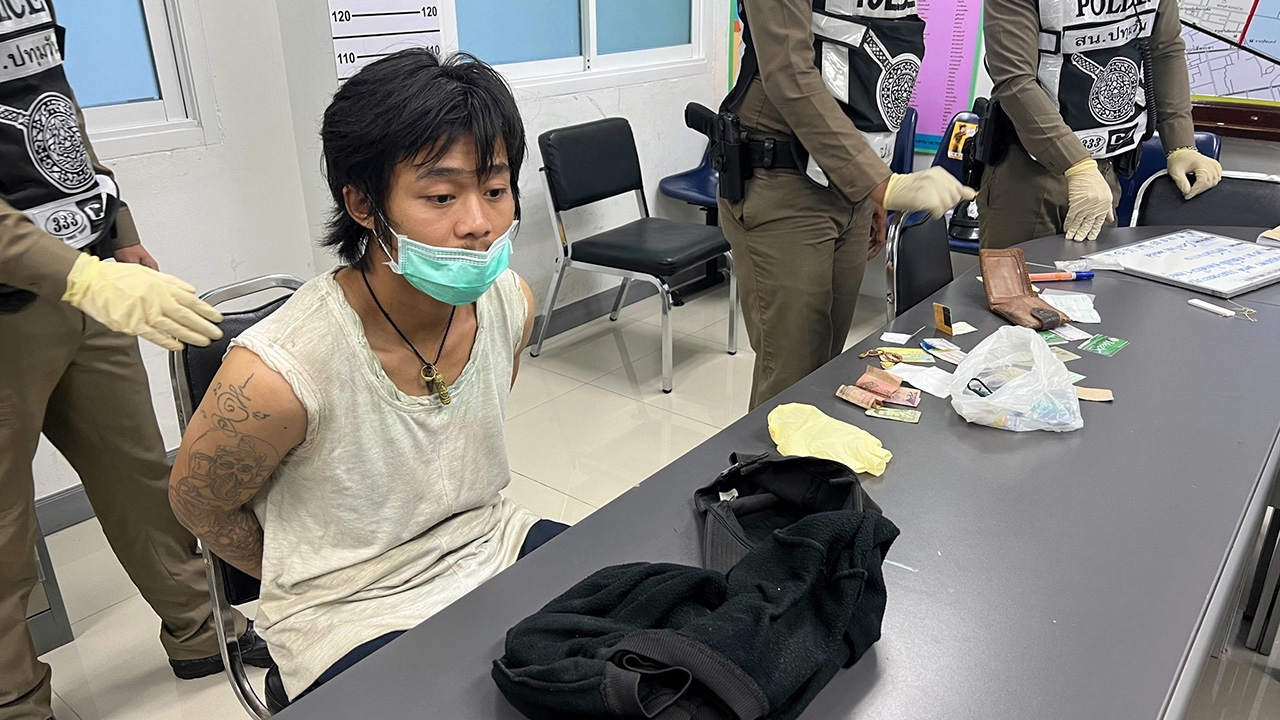 ภาพนายธนาพร บุตรสี หนุ่มเร่ร่อนไร้บ้านถูกคุมตัวมาสอบสวนที่ สน.ปทุมวัน หลังคลั่งใช้คัตเตอร์ไล่ทำร้าย ประชาชนในห้างสรรพสินค้าเซ็นทรัลเวิลด์บาดเจ็บ 2 ราย 1 ในนั้นเป็นสาววัย 17 เย็บ 10 เข็ม อ้างไม่รู้ตัวขณะก่อเหตุ (ภาพเล็ก) จุดเกิดเหตุร้านเสื้อผ้าชั้น 2.