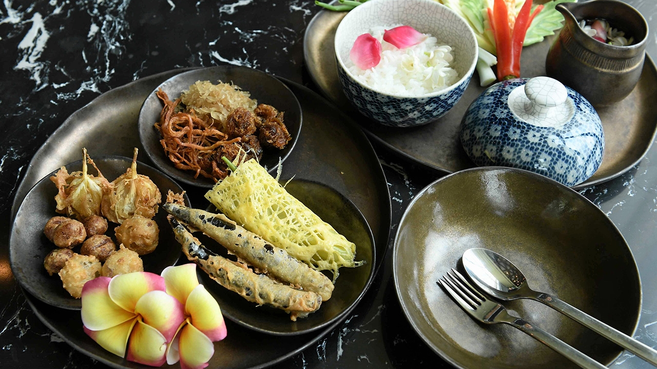 ร่วมสืบสานตำนานอาหารไทย MARIE GUIMAR (มารี กีมาร์) ร้านอาหารไทยสูตรดั้งเดิมที่ได้รับแรงบันดาลใจจาก Marie de Guimar (มารี เดอ กีมาร์) หรือที่รู้จักกันดีในนาม “ท้าวทองกีบม้า” นำโดย เชฟโจ้–ธนา ทวีถาวรสวัสดิ์ เชฟใหญ่มากฝีมือผู้ครํ่าหวอดอยู่ในวงการอาหารมาอย่างยาวนานได้นำเสนอเมนูข้าวแช่มารี กีมาร์ เพื่อคลายความร้อนอบอ้าวจากอากาศในฤดูร้อนนี้ สำหรับข้าวแช่มารี กีมาร์ “เชฟโจ้” อธิบายการทำว่า เริ่มจากน้ำลอยดอกไม้ อาทิ มะลิ กระดังงา ชมนาด ที่ทำให้น้ำข้าวแช่หอมละมุน ซึ่งแต่ละตำรับก็จะมีกลเม็ดเคล็ดลับแตกต่างกันออกไป เพื่อให้ได้กลิ่นที่หอมละมุนนุ่มลึก ทานคู่กับเครื่องเคียงและผักนานาชนิดที่นำมาเป็นส่วนประกอบ เช่น พริกหยวกสอดไส้หมูกุ้งปรุงรสแล้วนึ่ง ห่อด้วยโสร่งไข่จนสวยงาม หรือหอมแดงที่สดใหม่ นำมาคว้านแล้วสอดไส้ด้วยปลาช่อนผัดหอมข่า พริกแห้งก็กรีดเอาเม็ดออก เช็ดด้วยผ้าซับน้ำเบามือให้พอคลายความแห้งแข็ง แล้วค่อยสอดไส้ด้วยปลาป่น ลูกกะปิก็สำคัญไม่แพ้สิ่งอื่นที่ต้องผัดจนเนียนแห้งล่อนจากกระทะจนกลิ้งได้ จนส่งกลิ่นหอมของกะปิอ่อนๆ ตามด้วยกลิ่นกระชายเพิ่มมิติให้รสชาติ นำมาปั้นกลมแล้วชุบแป้งทอดให้กรอบนอกนุ่มใน นอกจากนี้ยังมีดอกลั่นทมสอดไส้ หัวไชโป๊ผัดหวาน หมูฝอยกรอบ และปลายี่สนผัดหวาน ไปจนถึงผักแนมก็จะมีมะม่วงเขียวเสวยที่ออกในหน้าร้อน ให้รสที่กรอบหวานมัน รวมทั้งกระชายอ่อน แตงกวา และต้นหอม การรับประทานข้าวแช่ เครื่องเคียง และข้าวจะไม่ผสมรวมกัน ให้รับประทานเครื่องเคียงแต่ละชนิดเข้าปากเคี้ยวจนได้รสชาติ แล้วจึงตักข้าวเทน้ำออกเล็ก น้อย แล้วเคี้ยวตาม เพื่อให้ได้รสหวานของเมล็ดข้าว ปิดท้ายด้วยการตักน้ำลอยดอกมะลิจิบ 1 ช้อน จะได้ความสดชื่นและความหอมในทุกครั้ง สัมผัสข้าวแช่มารี กีมาร์ได้แล้วตั้งแต่วันนี้-31 พ.ค.65 ที่ร้านมารี กีมาร์ ตั้งอยู่บนชั้น 28 อาคาร Wyndham Bangkok Queen Convention Centre ซอยไผ่สิงห์โต ถนนพระราม 4 กรุงเทพฯ เปิดให้บริการทุกวันตั้งแต่ 11.00-21.00 น. สำรองที่นั่ง และบริการจัดส่งดีลิเวอรี โทร. 0-2258-5697 หรือ www. marieguimarbkk.com
