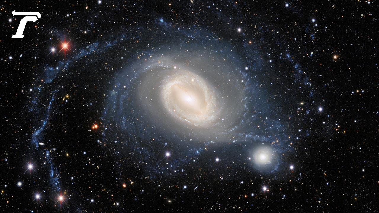 เครื่องมือทางดาราศาสตร์ขนาดใหญ่ เช่น DECam ตั้งอยู่บนกล้องโทรทรรศน์วิคเตอร์ เอ็ม.บลังโก (Víctor M. Blanco) ที่ได้รับทุนสนับสนุนจากกระทรวงพลังงานสหรัฐอเมริกา ถูกสร้างขึ้นเพื่อใช้สำรวจพลังงานมืด (Dark Energy Survey–DES) ซึ่งมีนักวิทยาศาสตร์กว่า 400 คน จาก 25 สถาบันใน 7 ประเทศ มาร่วมจัดทำแผนที่ดาราจักรหรือกาแล็กซีหลายร้อยล้านแห่ง ตรวจจับซุปเปอร์โนวานับพัน และค้นพบรูปแบบที่ละเอียดอ่อนของโครงสร้างจักรวาล ทั้งหมดนี้เพื่อให้รายละเอียดที่เกี่ยวกับพลังงานมืดลึกลับซึ่งเป็นตัวเร่งการขยายตัวของจักรวาลล่าสุด กล้องโทรทรรศน์วิคเตอร์ เอ็ม.บลังโก เผยภาพกาแล็กซีทรงกังหันแบบมีคานชื่อ NGC 1512 (ซ้าย) และ NGC 1510 (ขวา) เพื่อนบ้านขนาดจิ๋ว นอกจากจะเปิดเผยโครงสร้างภายในอันสวยงามของ NGC 1512 แล้ว ภาพนี้ยังแสดงให้เห็นเส้นสายชั้นนอกของ NGC 1512 ที่แผ่ขยายออกไปจนดูเหมือนจะห่อหุ้มกาแล็กซีข้างเคียงเล็ก ๆ ของตน โดยสายธารแห่งดวงดาวที่สว่างไสวดูเหมือนเชื่อมกาแล็กซีทั้ง 2 แห่งเข้าด้วยกัน นี่จึงเป็นหลักฐานของการปฏิสัมพันธ์ของแรงโน้มถ่วงระหว่างกันที่เกิดขึ้นมานานกว่า 400 ล้านปี การกระทำที่เกิดขึ้นระหว่างแรงโน้มถ่วงของ NGC 1512 และ NGC 1510 ส่งผลต่ออัตราการก่อตัวดวงดาวในกาแล็กซีทั้งสอง ทั้งการบิดรูปร่างของพวกมัน ซึ่ง NGC 1512 และ NGC 1510 จะควบรวมกันเป็นกาแล็กซีขนาดใหญ่เพียงแห่งเดียวในที่สุดทั้งนี้ กาแล็กซีคู่นี้ตั้งอยู่ในทิศทางของกลุ่มดาวนาฬิกา (Horologium) โดยอยู่ห่างจากโลกของเราประมาณ 40 ล้านปีแสง.Credit : Dark Energy Survey/DOE/FNAL/DECam/CTIO/NOIRLab/NSF/AURA Image processing: T.A. Rectot (University of Alaska Anchorage/NSF’s NOIRLab), J. Miller (Gemini Observatory/NSF’s NOIRLab), M. Zamani & D. de Martin (NSF’s NOIRLab)