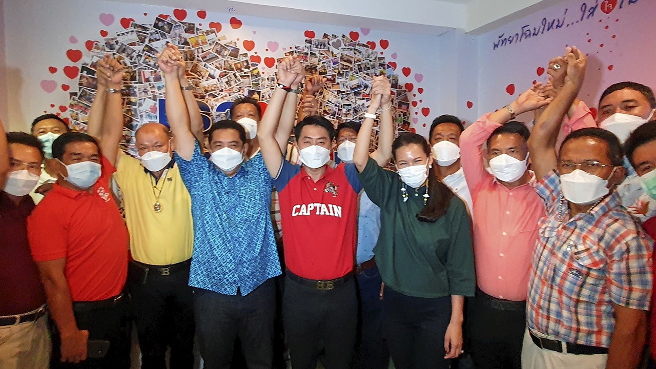 นายสนธยา คุณปลื้ม อดีตนายกเมืองพัทยา แกนนำกลุ่มเรารักพัทยา พร้อมทีมงานของนายปรเมศวร์ งามพิเชษฐ์ หรือเบียร์ ผู้สมัครรับเลือกตั้งนายกเมืองพัทยา จับมือกันชูฉลองชัยชนะ หลังรู้ผลการนับคะแนนอย่างไม่เป็นทางการ หลังปิดหีบเลือกตั้ง มีแต้มนำคู่แข่งมาเป็นอันดับ 1.