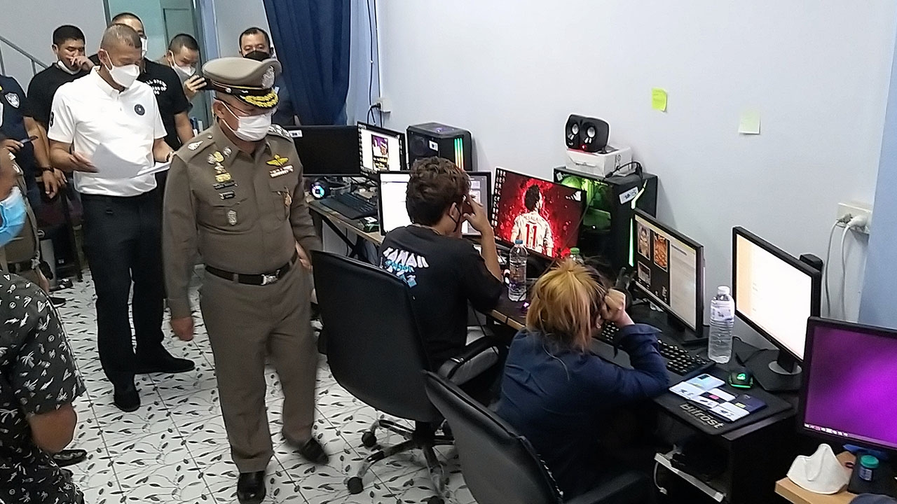 พล.ต.อ.ดำรงศักดิ์ กิตติประภัสร์ รอง ผบ.ตร.ในฐานะ ผอ.ศปอส.ตร. นำกำลังเข้าตรวจค้นทาวน์เฮาส์ใน ม.ปิ่นเกล้าพัฒนา ถนนบรมราชชนนี ถูกเช่าเป็นบ่อนพนันออนไลน์ มีเงินหมุนเวียนมากกว่า 10 ล้านบาทต่อเดือน.
