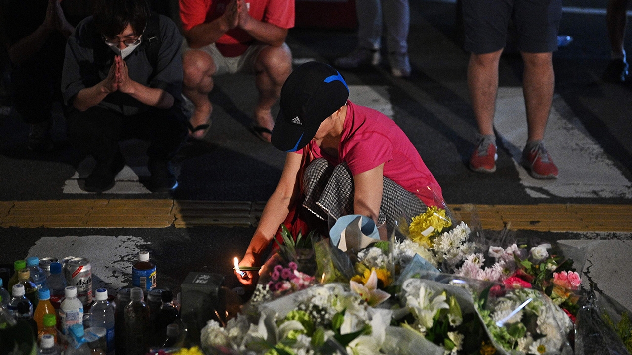 ประชาชนยังคงนำดอกไม้มาวางไว้อาลัยนายชินโสะ อาเบะ อดีตนายกรัฐมนตรี บนถนน บริเวณหน้าสถานีรถไฟยามาโตะ ไซได อิจิ ในเมืองนารา ทางภาคตะวันตกของญี่ปุ่น ตรงจุดเกิดเหตุที่ถูกคนร้าย ลอบสังหารด้วยปืนลูกซองประดิษฐ์เอง เมื่อวันศุกร์ที่ 8 ก.ค.ที่ผ่านมา ขณะขึ้นกล่าวปราศรัยหาเสียงช่วยลูกพรรค ในศึกเลือกตั้งวุฒิสมาชิก.