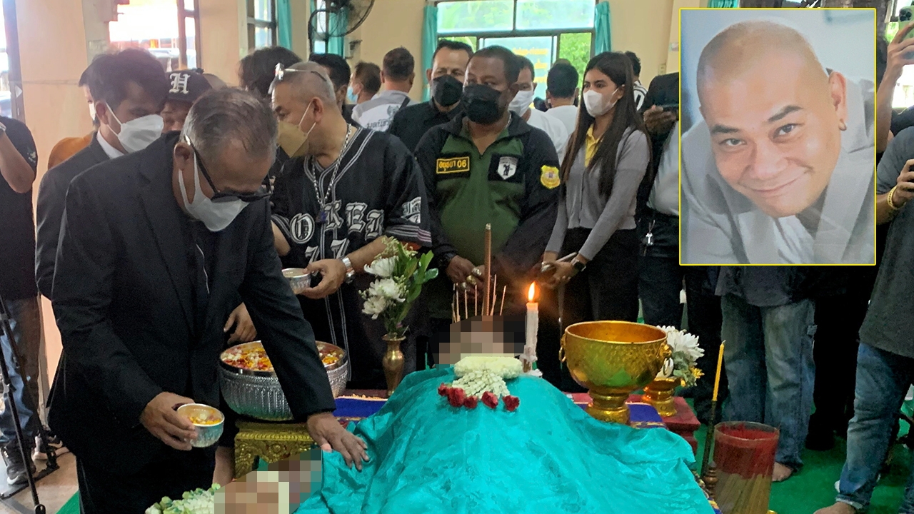 นายธัญญา โพธิ์วิจิตร หรือเป็ด เชิญยิ้ม ร่วมพิธีรดน้ำศพนายวลัชณัฏฐ์ ก้องภพตารีย์ หรือโป๊งเหน่ง เชิญยิ้ม (รูปเล็ก) หลังป่วยเป็นโรคไตจนช็อกเสียชีวิตด้วยวัย 59 ปี ที่วัดช้างใหญ่ จ.พระนครศรีอยุธยา ศิลปินตลกต่างมาร่วมอาลัย.
