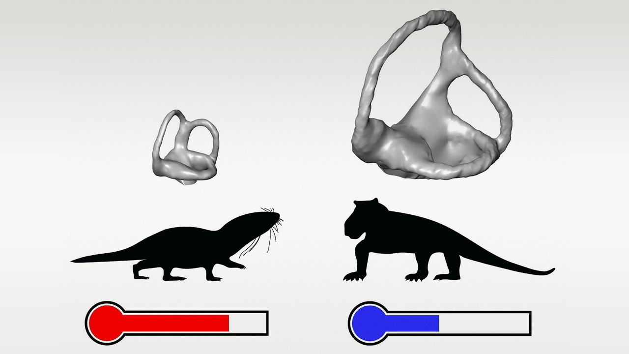 การค้นหาหลักฐานโดยตรงว่าสรีรวิทยาของสิ่งมีชีวิตในยุคโบราณทำงานอย่างไรนับเป็นงานที่ท้าทายมาก ซึ่งเนื้อเยื่ออ่อนที่จะให้ข้อมูลเกี่ยวกับเลือดอุ่นหรือเลือดเย็นมากที่สุดจะไม่ค่อยถูกเก็บรักษาไว้ในซากดึกดำบรรพ์หรือฟอสซิล นักบรรพชีวินวิทยาจึงไม่อาจวัดอุณหภูมิร่างกายของสัตว์ที่สูญพันธุ์ได้โดยตรงเมื่อเร็วๆนี้ ทีมนักบรรพชีวินวิทยาจากพิพิธภัณฑ์ประวัติศาสตร์ธรรมชาติกรุงลอนดอนในอังกฤษ และจากมหาวิทยาลัยลิสบอนในโปรตุเกส เผยพบหลักฐานใหม่ที่เชื่อว่าจะเฉลยว่าการที่สัตว์มีการดูดความร้อน หรือมีเลือดอุ่นนั้นเกิดขึ้นเมื่อใด หลังศึกษาโครงสร้างหูชั้นในของสัตว์เลี้ยงลูกด้วยนมที่มีลักษณะเป็นท่อกึ่งวงกลม 3 ท่อเชื่อมต่อกันภาย ในหูชั้นใน ซึ่งจะควบ คุมการทำงานที่สำคัญของร่างกาย เช่น การทรงตัว การมองเห็น การเคลื่อนไหว และวิวัฒนาการของโครงสร้างเหล่านี้ได้รับอิทธิพลจากอุณหภูมิของร่างกาย โดยอุณหภูมิที่ค่อนข้างสูงจะทำให้ของเหลวภายในวงกลมมีความหนืดน้อยลง ดังนั้นท่อและช่องหูชั้นในจึงมีรูปร่างแตกต่างกัน และมักมีขนาดเล็กลงในชนิดสัตว์เลือดอุ่น ซึ่งทีมวิจัยรวบรวมชุดข้อมูลฟอสซิลซีแนพซิด (Synapsids) บรรพบุรุษของสัตว์เลี้ยงลูกด้วยนม จำนวน 56 ชุด โดยมุ่งศึกษาที่รูปร่างและขนาดของหูชั้นใน เพื่อจะระบุให้ได้ว่าเมื่อใดที่สัตว์เลี้ยงลูกด้วยนม เริ่มกลายเป็นสัตว์ที่มีการดูดความร้อนทีมนักวิจัยเสนอว่าบรรพบุรุษของสัตว์เลี้ยงลูกด้วยนมเริ่มมีอุณหภูมิร่างกายอุ่นขึ้นเมื่อประมาณ 233 ล้านปีที่แล้ว ในยุคไทรแอสสิก โดยในเวลานั้นไดโนเสาร์เพิ่งเริ่มแพร่ขยายพันธุ์ สัตว์เลื้อยคลานก็เป็นสิ่งมีชีวิตที่โดดเด่นและหลากหลายที่สุดบนบก สัตว์เลี้ยงลูกด้วยนมรุ่นก่อนมีขนาดค่อนข้างเล็ก มักเป็นสัตว์คล้ายพังพอน.