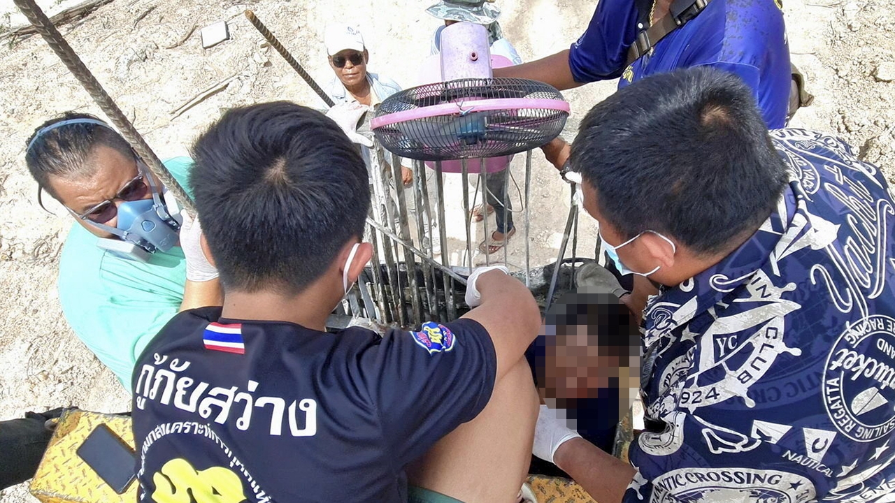 เจ้าหน้าที่เร่งช่วยชีวิตนายสมหวัง หัสดง คนงาน คุมเครื่องจักร ตกลงไปในห้องเครื่องปั่นปูนท้ายรถปั๊ม คอนกรีตในที่ก่อสร้าง อ. สัตหีบ จ.ชลบุรี ขาซ้ายติดอยู่ในเฟืองใบพัดต้องใช้เครื่องตัดถ่างงัดดึงตัวออกมาทำให้ ขาซ้ายขาด 2 ท่อน.