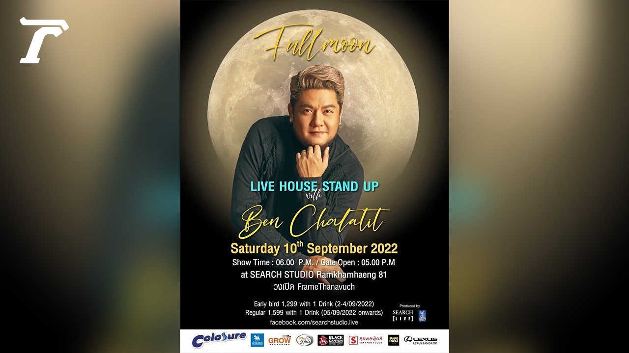 นอกจากวันเสาร์ที่ 10 กันยายนนี้จะตรงกับวันไหว้พระจันทร์แล้ว ทาง SEARCH STUDIO ชวนแฟนๆร่วมงาน “Full Moon Live House Stand Up with Ben Chalatit” ในรูปแบบการแสดงในไลฟ์เฮ้าส์ แถมยังได้ใกล้ชิดศิลปินแบบสุดๆ ที่จะทำให้คืนพระจันทร์เต็มดวงครั้งนี้เป็นคืนที่น่าจดจำอีกคืนหนึ่งของเหล่าบรรดาแฟนคลับเบน ชลาทิศ ที่ไลฟ์เฮ้าส์ เซิร์ช สตูดิโอรามคำแหง 81เบน ชลาทิศ เผยว่า “ใครที่เคยเรียกว่าติดตามได้มาดูคอนเสิร์ตที่ไลฟ์เฮ้าส์ ก็คงจะรู้ว่าเป็นคอนเสิร์ตที่เรียกว่าใกล้ชิดและก็สนุกสนานกันขนาดไหน แสง สี เสียงจัดเต็มมากๆ เป็นแสง สี เสียง ที่ดีที่สุดในตอนนี้เลย ก็อยากจะเชิญชวนทุกคนมามีความสุขร่วมกันกับเบนในคืนนั้น คอนเสิร์ตนี้เป็นคอนเสิร์ตยืนทั้งคอนเสิร์ตเลยนะครับ และผมจะเตรียมเพลง เอกซ์คลูซีฟ ไว้ให้ทุกคน และก็มาเฉลิมฉลองฟูลมูน ไปด้วยกันนะครับ”ปล่อยใจไปให้สุด ในงาน “Full Moon Live House Stand Up with Ben Chalatit” วันเสาร์ที่ 10 ก.ย.65 ณ เซิร์ช สตูดิโอ รามคำแหง 81 จำหน่ายบัตรแล้ววันนี้ บัตรราคา 1,599 บาท พร้อมรับเครื่องดื่ม ทาง www.thaiticketmajor.com และเคาน์เตอร์ไทยทิคเก็ตเมเจอร์ทุกสาขา ติดตามรายละเอียดได้ที่ เฟซบุ๊ก : SEARCH STUDIO