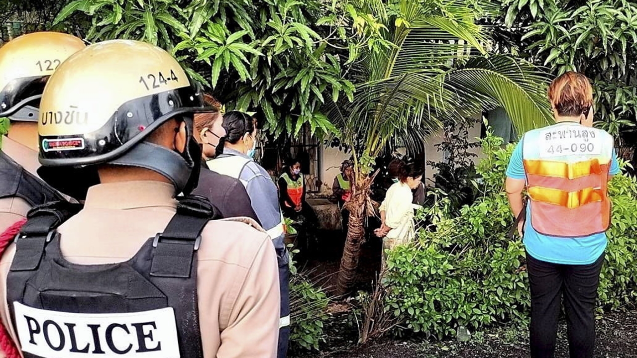 ตำรวจ สน.บางชัน ตรวจสอบที่เกิดเหตุนาง สมศรี ยิ้มแฉล้ม อายุ 59 ปี พนักงานกวาดถนนสำนักงานเขตสะพานสูง ถูกรถชนช่วง เช้ามืดขณะกวาดถนนคู่ขนานกาญจนาภิเษกแล้ว คนขับตีนผีหลบหนี.