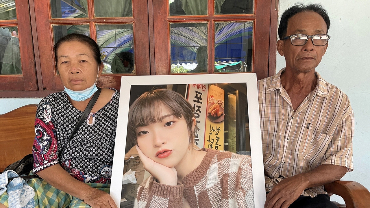 นายสาครและนางหนา มาแก้ว พ่อแม่ของครูแบม-ณัฐธิชา ครูสอนภาษาเกาหลี ที่เสียชีวิตในโศกนาฏกรรม “อิแทวอน” นั่งเศร้าอยู่กับรูปลูกสาวด้วยความอาลัย ขณะที่ศพครูแบมจะถูกส่งจากเกาหลีใต้มาถึงเมืองไทยวันที่ 4 พ.ย.