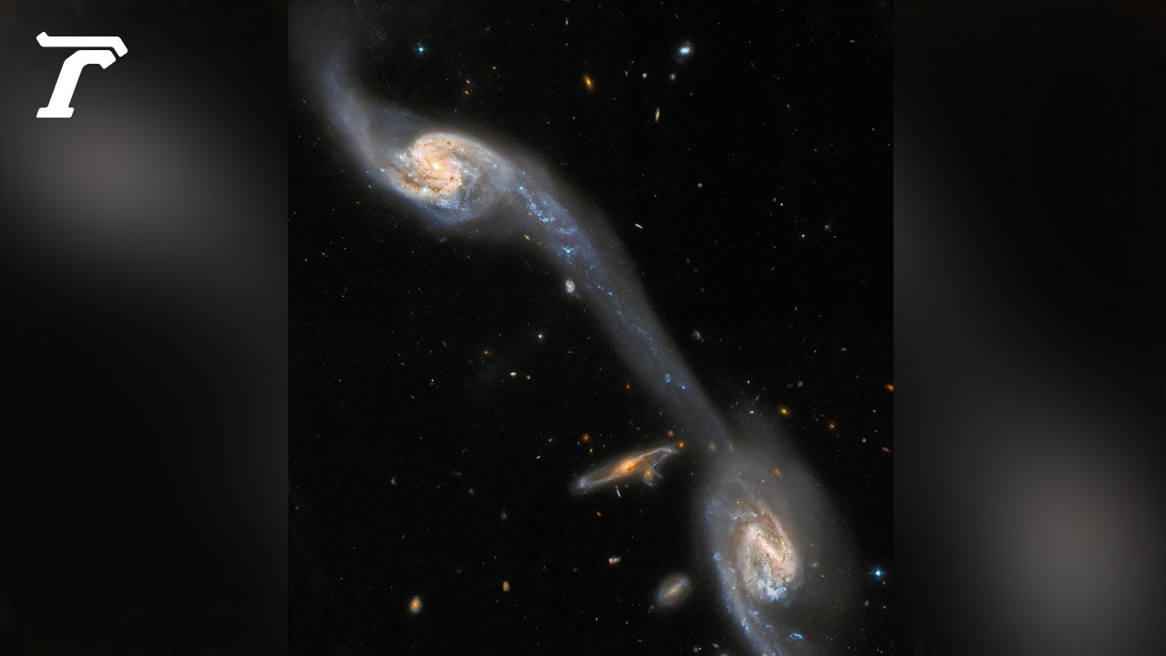 กล้องสำรวจขั้นสูง (Advanced Camera for Surveys-ACS) ที่ติดตั้งบนกล้องโทรทรรศน์อวกาศฮับเบิล เครื่องมือขององค์การนาซา สหรัฐอเมริกา และองค์การอวกาศยุโรป ได้ส่งการบ้านที่ชวนตื่นตาตื่นใจอีกครั้ง หลังสำรวจกลุ่มดาราจักรหรือกาแล็กซีลักษณะประหลาด ซึ่งการค้นหาสิ่งที่น่าสนใจเหล่านี้ก็เพื่อมอบให้กับสำหรับการสังเกตการณ์ในอนาคตด้วยกล้องโทรทรรศน์อวกาศเจมส์ เวบบ์ ต่อไปภาพล่าสุดก็คือกาแล็กซี 2 แห่งในกลุ่มกาแล็กซีแฝดสามที่ชื่อ Arp 248 หรือเรียกว่า “Wild's Triplet” อยู่ห่างจากโลกประมาณ 200 ล้านปีแสง ตั้งอยู่ในกลุ่มดาวหญิงสาว มีลักษณะเป็นกาแล็กซีชนิดก้นหอยหรือทรงกังหันขนาดใหญ่ 2 แห่งแลคล้ายว่ากำลังถูกเชื่อมต่อกันด้วยสะพานเรืองแสง อันเป็นกระแสธารอันยาวยืดของดวงดาวและฝุ่นระหว่างดวงดาว เกิดขึ้นจากแรงดึงดูดซึ่งกันและกันของกาแล็กซีทั้ง 2 แห่งนั่นเองนอกจากนี้ ในภาพดังกล่าวยังปรากฏภาพของกาแล็กซีชนิดก้นหอยที่มีขนาดเล็กกว่าและไม่เกี่ยวข้องอะไรกันกับกลุ่มกาแล็กซี Arp 248 โดยขนาบอยู่ด้านข้างให้เห็นอย่างชัดเจน.Credit : ESA/Hubble & NASA, Dark Energy Survey/Department of Energy/Fermilab Cosmic Physics Centre/Dark Energy Camera/Cerro Tololo Inter-American Observatory/NOIRLab/National Science Foundation/AURA Astronomy; J. Dalcanton