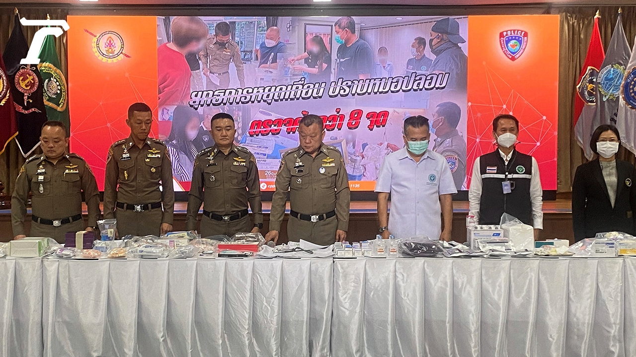 ตำรวจ ปคบ.จับมือ อย.ลุยกวาดจับหมอเถื่อน 8 ราย หลังบุกค้นคลินิก 8 แห่งใน 4 จังหวัด ลอบให้บริการเสริมความงามฉีดฟิลเลอร์ โบทอกซ์ ตะลึงพบหมอเถื่อนสาวพัทยาจบแค่ชั้น ป.6 แต่ใช้วิธีศึกษาจากยูทูบ สั่งยาทางออนไลน์ ใช้ตัวเองเป็นหนูทดลองฉีดหน้าตัวเองก่อนรักษาให้คนทั่วไป จ่อขยายผลเอาผิดเจ้าของคลินิกทั้งหมด หากรู้เห็นรับหมอเถื่อนเข้ามาให้บริการ เตือนระวังอย่าเห็นว่าราคาถูก อาจพิการหรือเสียชีวิตได้ปฏิบัติการกวาดล้างหมอเถื่อนหมอกระเป๋าครั้งนี้ เปิดเผยขึ้นเมื่อเวลา 10.00 น. วันที่ 6 ธ.ค.ที่กองบัญชาการตำรวจสอบสวนกลาง (บช.ก.) พล.ต.ต.อนันต์ นานาสมบัติ ผบก.ปคบ. พ.ต.อ.ธรากร เลิศพรเจริญ รอง ผบก.ปคบ. พ.ต.อ.เนติ วงษ์กุหลาบ ผกก.4 บก.ปคบ. พ.ต.ท.สุพจน์ พุ่มแหยม รอง ผกก.4.บก.ปคบ. นพ.ภานุวัฒน์ ปานเกตุ รองอธิบดีกรมสนับสนุนบริการสุขภาพ สำนักงานคณะกรรมการอาหารและยา ภญ.อรัญญา เทพพิทักษ์ ผอ.ศูนย์จัดการเรื่องร้องเรียนและปราบปรามการกระทำผิดกฎหมายเกี่ยวกับผลิตภัณฑ์สุขภาพ (ศรป.) ร่วมกันแถลงผลกวาดล้างจับกุมคลินิกเสริมความงามเถื่อน 8 แห่งใน กทม. ชลบุรี, สมุทรสงคราม และปทุมธานี จับกุมผู้ต้องหาได้ 8 ราย ตรวจยึดของกลาง 836 รายการ เป็นยาและเวชภัณฑ์ 109 รายการ, เครื่องมือแพทย์และอุปกรณ์ในการตรวจคนตรวจรักษา 57 รายการ, เวชระเบียน 670 รายการพล.ต.ต.อนันต์ นานาสมบัติ ผบก.ปคบ. เผยว่า ได้รับเรื่องร้องเรียนจาก อย.และ สบส.ให้สืบสวนกรณีมีบุคคลแอบอ้างเป็นแพทย์หลอกเสริมความงามให้ประชาชนหลายพื้นที่ ผู้ให้บริการไม่ใช่แพทย์จริงๆ บางรายศึกษาวิธีฉีดเสริมความงามด้วยตัวเองจาก YouTube และสั่งยาต่างๆจากช่องทางออนไลน์ มาทดลองฉีดหน้าตนเอง ก่อนจะมาทำให้กับลูกค้าได้ส่งกำลังตรวจสอบจับกุมขณะที่ พ.ต.อ.เนติ วงษ์กุหลาบ ผกก.4 บก.ปคบ. กล่าวต่อว่า ตรวจค้นพบคลินิกที่เปิดให้บริการโดยไม่ได้รับอนุญาต ยึดของกลางได้ 836 รายการ ส่วนใหญ่เป็นยาและเวชภัณฑ์ 109 รายการ เครื่องมือแพทย์และอุปกรณ์ตรวจรักษา 57 รายการ เวชระเบียน 670 รายการ ทั้งหมดรับสารภาพ ไม่มีใบประกอบวิชาชีพเวชกรรม แต่ละคนพบว่าจบการศึกษาระดับปริญญาตรี คณะพยาบาลศาสตร์ 2 ราย ม.6 จำนวน 4 ราย ปวส. 1 ราย และ ป.6 อีก 1 รายสำหรับการจับกุมทั้ง 8 เป้าหมายครั้งนี้ ประกอบด้วย บ้านเลขที่ 134/62 ต.แม่กลอง อ.เมืองสมุทร สงคราม จับกุม น.ส.ธนัศร ชัยสมศรี อายุ 24 ปี จบ ม.6 เคยเป็นผู้ช่วยพยาบาลมาก่อน ทำมาแล้วประมาณ 1 ปี จุดที่ 2 มินท์มันตรา คลินิกเวชกรรม เลขที่ 2/2 (ชั้น 1) ซอยรามอินทรา 5 แขวงอนุสาวรีย์ เขตบางเขน กทม. จับกุม น.ส.ศรีษุณี ปัญญาวัฒน์ อายุ 36 ปี (ทำการรักษานอกเวลาที่ขออนุญาต) จบ ปวส. ทำมาแล้วปร