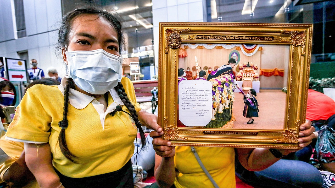 น.ส.วราภรณ์ สร้อยเสน บัณฑิต มรภ.บุรีรัมย์ ที่สูงเพียง 92 ซม. มาลงนามถวายพระพร “พระองค์ภา” ที่ รพ.จุฬาลงกรณ์ฯ พร้อมโชว์ภาพแห่งความประทับใจในวันรับพระราช ทานปริญญาบัตรจากพระ หัตถ์ของพระองค์ภา.