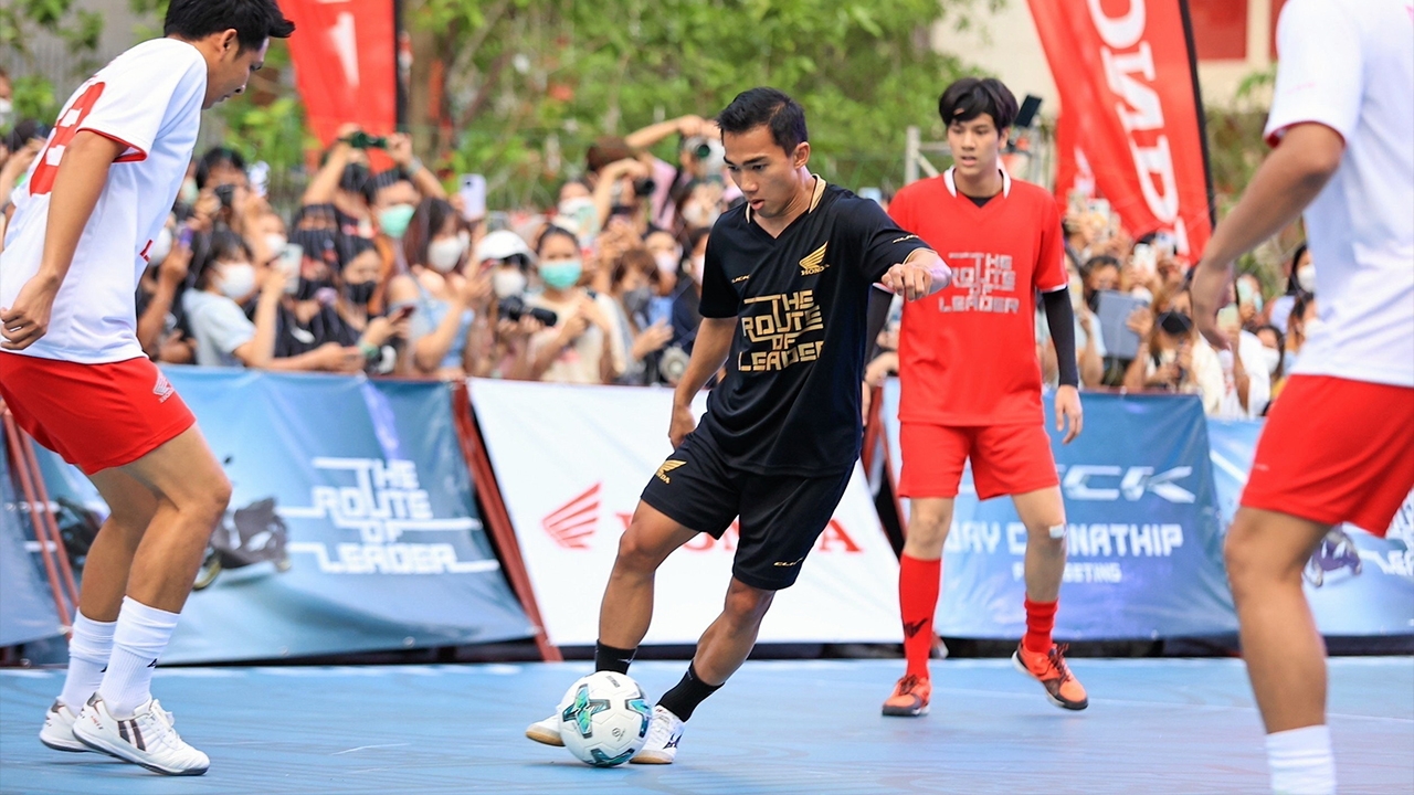 กองเชียร์พร้อมมาก Honda Click Series เอาใจแฟนลูกหนังได้เนรมิตลานสยามสแควร์ เป็นสนามฟุตบอลแมตช์พิเศษ ในงานแฟนมีต “เจ ชนาธิป The Route of Leader by Honda Click Series” ถูกใจแฟนบอลกันสุดๆ โดยไฮไลต์สุดมันส์ที่เรียกเสียงกรี๊ด!จากแฟนๆ จนสยามแทบ แตก!! คือการดึงนักเตะจ่าฝูงแข้งทองของวงการฟุตบอลไทย นำโดย เจ-ชนาธิป สรงกระสินธ์ พรีเซนเตอร์ Honda Click โชว์ลีลาฝีเท้าลงดวลแข้งกับนักแสดงชั้นนำจาก GMM TV และ THE SNACK ทั้ง โอม–ภวัต จิตต์สว่างดี, นนน–กรภัทร์ เกิดพันธุ์, เพิร์ธ–ธนพนธ์ สุขุมพันธนาสาร และ ชิม่อน–วชิรวิชญ์ เรืองวิวรรธน์ และ THE SNACK Content Creator อาทิ จีโน่-ปิยพล ม่วงมี, ปอนด์-นิธิศ แผนรุ่งรัตน์, กาย-ศิรวิชญ์ แก้วนิมิตร และยิ้ม- ศุภวิชญ์ ม่วงมี โชว์ลีลาลูกหนัง อีกด้านเป็นทีมฝั่งตัวท็อปๆของวงการฟุตบอลไทยมีจ่าฝูงอย่างเจ-ชนาธิป สรงกระสินธ์ พร้อมด้วยลีซอ-ธีรเทพ วิโนทัย, แตงโม-พงษ์พิสุทธิ์ ผิว อ่อน, ต๊อบ-วาทิต ตรีครุธพันธุ์ ออก ลวดลายโชว์ฝีเท้าเน้นๆ แฟนๆเลือกไม่ถูกอยากจะเข้าไปซับเหงื่อให้ทั้งฝั่งหนุ่มฮอตและนักเตะดัง เสิร์ฟความสนุกสุดมันส์กันต่อด้วยกิจกรรมแน่นๆ ปิดท้ายงานกันแบบแฮปปี้ ด้วยมินิคอนเสิร์ตจากวง Cock tail คุ้มสุดมันส์กันทั้งงาน.
