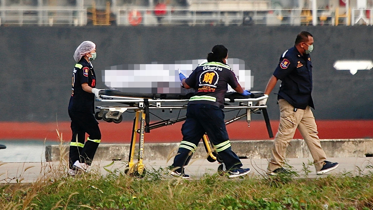 จนท.กู้ภัยเคลื่อนย้ายร่าง 4 ผู้เสียชีวิตออกจากท่าเรือประจวบฯ รอเจ้าหน้าที่ตรวจพิสูจน์อัตลักษณ์ยืนยันตัวบุคคลให้แน่ชัด ขณะที่ภาพจากยานสำรวจใต้น้ำ “Sea Fox” เปรียบเทียบ ร.ล.สุโขทัย ก่อนอับปาง (รูปเล็กซ้าย) อยู่ในสภาพสมบูรณ์จอดสงบนิ่ง (ขวา) อยู่บนผืนทรายใต้ทะเล.