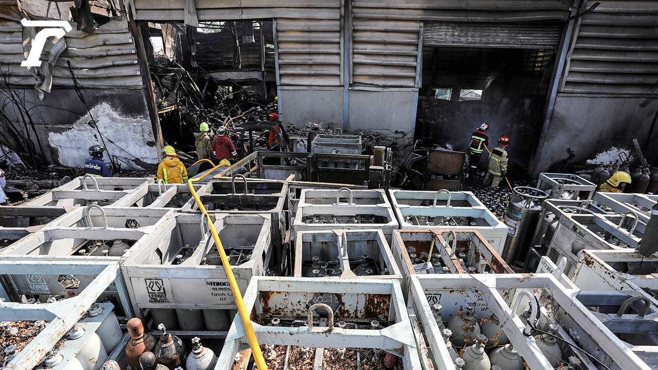 บึมสนั่นโรงงานบรรจุก๊าซ ย่านลำลูกกา จ.ปทุมธานี เกิดไฟไหม้ควันดำทะมึนลุกลามถังบรรจุ ก๊าซระเบิดกระเด็นออกมาด้านนอกอาคาร เจ้าหน้าที่ดับเพลิงฉีดน้ำอย่างระมัดระวังเกรงได้รับอันตราย โชคดีถังก๊าซขนาดใหญ่ 6 ถัง ไม่ระเบิดส่วนชาวบ้าน ผวาเสียงระเบิดต่างหลบอยู่ในบ้าน พนักงานเผยต้นเพลิงอยู่ที่ออฟฟิศชั้น 2 ของอาคาร คาดสาเหตุมาจากไฟฟ้าลัดวงจรเหตุไฟไหม้โรงงานบรรจุก๊าซรายนี้เปิดเผยเมื่อเวลา 13.00 น. วันที่ 25 ม.ค. ร.ต.อ.จักรพงศ์ นุชพัฒน์ รอง สว. (สอบสวน) สภ.ลำลูกกา จ.ปทุมธานี รับแจ้งเหตุไฟไหม้โรงงานบริษัท แลบแก๊ส (ประเทศไทย) จำกัด เลขที่ 4/9 หมู่ 13 ต.บึงคำพร้อย ไปตรวจสอบพร้อมด้วย พ.ต.อ.วิวัฒน์ อัศวะวิบูลย์ ผกก.ลำลูกกา เจ้าหน้าที่บรรเทาสาธารณภัยจาก อบต.บึงคำพร้อย และรถดับเพลิง 20 คันที่เกิดเหตุเป็นอาคาร 2 ชั้น เนื้อที่ 1 ไร่ พบกลุ่มควันสีดำทมึนพวยพุ่งออกมาจากตัวอาคารจำนวนมาก และมีเสียงระเบิดดังขึ้นอย่างต่อเนื่อง ถังก๊าซระเบิดกระเด็นออกมาข้างนอกตัวอาคารหลายถัง ตรวจสอบเบื้องต้นเป็นโรงงานผลิตและบรรจุก๊าซอ๊อกซิเจน ก๊าซไนโตรเจน ก๊าซอาร์กอน ก๊าซฮีเลียมและก๊าชอื่นๆ ภายในเป็นอาคาร 2 ชั้น และโดมขนาดใหญ่ เจ้าหน้าที่ไม่สามารถเข้าไปฉีดน้ำภายในอาคารได้ ต้องฉีดน้ำเลี้ยงเฉพาะภายนอกอาคารเท่านั้นส่วนบริเวณด้านหลังอาคารมีถังบรรจุก๊าซอ๊อกซิเจน ก๊าซไนโตรเจน และก๊าซอาร์กอน (Ar) ขนาดใหญ่สูงเท่าตัวอาคารจำนวน 6 ถัง เจ้าหน้าที่ต้องฉีดน้ำเลี้ยงถังอย่างต่อเนื่องเพื่อไม่ให้เกิดความร้อน นอกจากนี้ภายในอาคารยังมีถังก๊าซขนาดเล็กอีกหลายร้อยถังเสียงระเบิดดังเป็นระยะ เจ้าหน้าที่ระดมฉีดน้ำสกัดเพลิงภายในบริษัทใช้เวลาประมาณ 1 ชั่วโมง ควบคุมเพลิงไว้ได้ มีพนักงานหญิงได้รับบาดเจ็บ 1 คน เหตุการณ์ดังกล่าวทำให้ชาวบ้านที่อยู่พื้นที่ใกล้เคียงต่างหวาดผวา เพราะกลัวถังก๊าซขนาดใหญ่ในโรงงานจะระเบิดสอบถามคนงานที่เห็นเหตุการณ์ทราบว่า เพลิงลุกไหม้ที่บริเวณชั้นที่ 2 ของอาคารเป็นออฟฟิศก่อนจะลุกลามไหม้ลงมาด้านล่างอย่างรวดเร็ว พนักงานช่วยกันหยิบถังดับเพลิงไปฉีดดับไฟ แต่ไม่ทันไฟลามไปจุดบรรจุก๊าซแล้วมีเปลวไฟลุกไหม้ พนักงานต่างวิ่งหนีตายออกมาจากโรงงาน ด้าน น.ส.ณัฐชยา พลับนิล อายุ 27 ปี ชาวบ้านใกล้เคียงที่เกิดเหตุ เปิดเผยว่า ช่วงเกิดเหตุเลี้ยงลูกอยู่ในบ้านได้ยินเสียงระเบิดดังขึ้นสนั่นหวั่นไหว รีบออกมาดูเห็นกลุ่มควันดำพวยพุ่งและไฟลุกไหม้ เกิดความกลัวว่าก๊าซจะระเบิดรีบเข้าไปอยู่ในบ้าน โรงงานแห่งนี้ตั้งมา 10 ปี แต่ไม่เคยเกิดเหตุไฟไหม้มาก่อนด้าน พ.