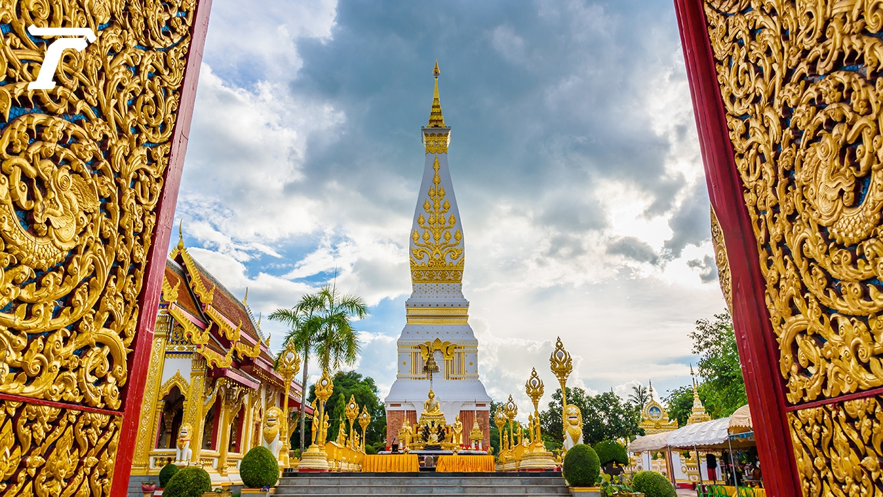 บันทึกการเดินทาง “สู่อีสาน” ร่วมกับสถาบันโพธิคยาวิชชาลัย 980 ของหัวหน้าทีมซอกแซก ทริปนี้จะจบลงอย่างไม่สมบูรณ์แน่นอนหากมิได้เขียนถึงวัดพระธาตุพนมวรมหาวิหาร ณ อำเภอธาตุพนม จังหวัดนครพนม ที่คณะของเราได้แวะกราบสักการะเพื่อความเป็นสิริมงคลด้วย เพราะอยู่บนเส้นทางผ่านจริงๆแล้วเราไปถึงวัดพระธาตุพนมก่อนที่จะถึงจังหวัดมุกดาหาร จุดหมายปลายทางด้วยซํ้าไป และได้แวะเข้าสักการะนับตั้งแต่วันแรกที่สำคัญ ณ วันที่เราเดินทางไปถึง (5 กุมภาพันธ์) นั้น เป็นช่วงเวลาที่มีงานประจำปีเฉลิมฉลององค์พระธาตุ ที่กำหนดไว้ว่าระหว่างวันเพ็ญเดือน 3 ถึง แรม 1 คํ่า เดือน 3 ให้เป็นวันแห่งการสมโภช จึงมีการออกร้านจำหน่ายอาหารและข้าวของพื้นเมือง รวมถึงการละเล่นรื่นเริงต่างๆในบริเวณวัด แบบงานวัดทั่วไปทั้งหลายส่วนในบริเวณชั้นในซึ่งจะมีรั้วล้อมรอบองค์พระธาตุนั้น ก็จะมีลานกว้างอยู่โดยรอบ สามารถที่จะจัดขบวนแห่อัญเชิญพานดอกไม้ และเครื่องบวงสรวงต่างๆ เดินเวียนไปโดยรอบแบบเวียนเทียนได้อย่างสะดวก และจะมีพี่น้องประชาชนทั้งชาวไทยชาวลาวผลัดเวียนกันมาตั้งขบวนแห่ด้วยแตรวงบ้าง กลองยาวบ้าง หรือไม่ก็ใช้รถเข็นเครื่องขยายเสียงเปิดเพลงบรรเลงด้วยเสียงพิณบ้าง เสียงแคน ดังกระหึ่มอยู่ตลอดเวลาแม้จะเป็นเวลาเที่ยงวันเศษ แดดร้อนมาก แต่พี่น้องประชาชนก็มิได้หวาดหวั่นย่อท้อยังคงหลั่งไหลเข้ามากราบไหว้ในระยะใกล้ และว่าจ้างแตรวงหรือกลองยาวให้ทำขบวนแห่แทบมิได้หยุดพักเลยคณะของเราตระหนักตั้งแต่ต้นแล้วว่าคงรวมตัวกันเป็นกลุ่มก้อนได้ยากในสถานการณ์เช่นนี้ จึงนัดแนะกันว่าต่างคนต่างแยกกันไปไหว้น่าจะดีที่สุด ใครแหวกฝูงชนเข้าใกล้สุดได้ก่อน ก็ไหว้ก่อน เสร็จแล้วเดินกลับไปเจอกันที่รถ ซึ่งจอดรออยู่ที่ถนนด้านนอกระยะทางเดินกว่า 1 กิโลเมตรหัวหน้าทีมซอกแซกแหวกมายืนใกล้ๆรั้วพระธาตุ แม้จะมิได้เข้าไปข้างในก็เห็นองค์ทั้งองค์ได้อย่างเด่นชัด จึงประนมมือไหว้ขอพรท่านอยู่บริเวณนอกรั้วนั่นเองไหว้เสร็จ ทำบุญที่เต็นท์จำหน่ายดอกไม้ธูปเทียน และมีตู้บริจาควางไว้หลายตู้เสร็จ หัวหน้าทีมก็หลบไปนั่งที่ใต้ต้นไม้ขนาดใหญ่พอสมควรต้นหนึ่ง ซึ่งมีการจัดทำม้านั่งหินอ่อนไว้รอบๆโคนต้นไม้ให้ผู้มาสักการะได้นั่งพักหลบแดด ที่นับนาทีจะยิ่งจ้าและร้อนขึ้นทุกขณะระหว่างนั่งพักรออยู่นั้น หัวหน้าทีมก็ทำใจให้สงบนิ่งพร้อมกับมองไปที่ยอดพระธาตุนึกถึงเรื่องราวต่างๆที่เกี่ยวกับพระธาตุพนมตามที่เคยได้ยินคนอีสาน ย่านแม่นํ้าโขงบอกเล่าให้ฟังรายละเอียดค่อนข