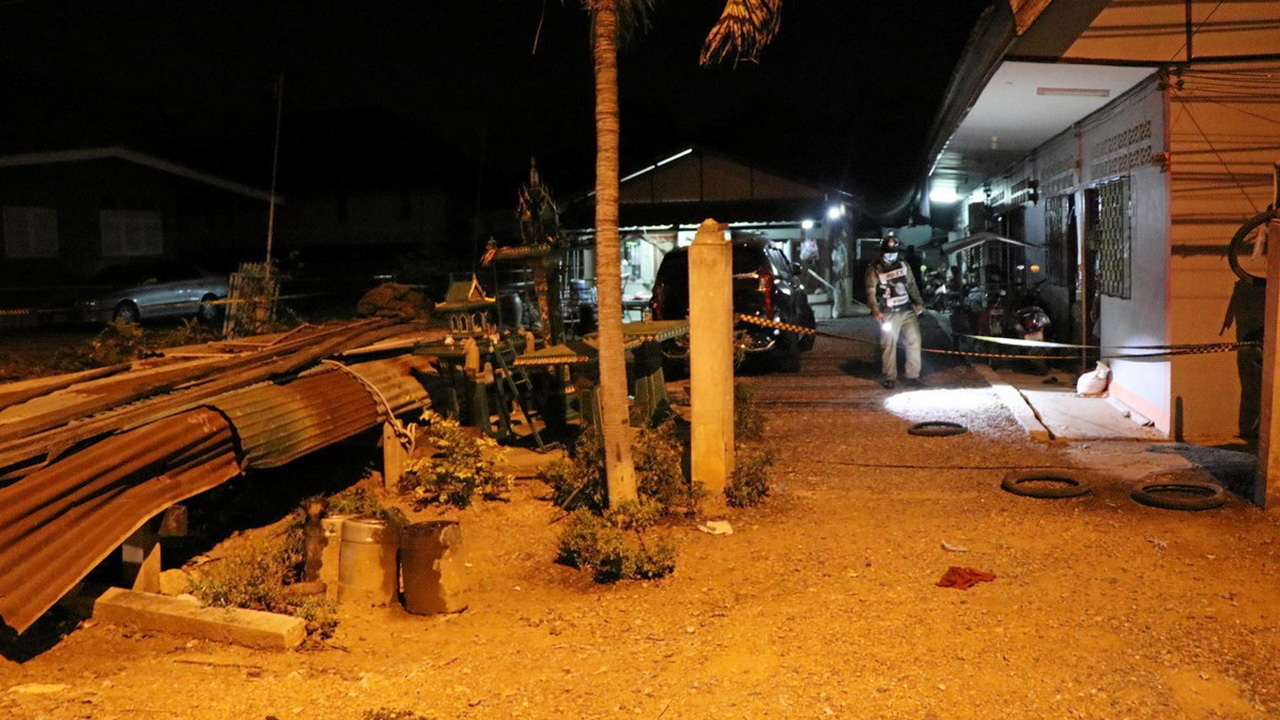 ดวลสนั่นกลางวงเหล้าดับเสี่ยรับเหมา ลูกชายอาการสาหัส ก่อนเกิดเหตุสองพ่อลูกชวนกันไปหาคนรู้จักแล้วนั่งดื่มกินกันหน้าบ้าน คนร้ายมาขอดื่มด้วยจนมีปัญหาขัดแย้งกัน ก่อนที่มือปืนทำทีขี่รถ จยย.ออกไปแล้วย้อนกลับมาใช้ปืนยิงใส่ ผู้ตายพยายามใช้ 9 มม.ยิงต่อสู้ พลาดโดนกระสุนเจาะคิ้วทะลุศีรษะด้านหลังล้มฟุบไปสิ้นใจที่โรงพยาบาล ส่วนลูกชายถูกยิงนิ้ว 2 ข้างและเฉียดหัว รอดตายหวุดหวิด ตำรวจตรวจวงจรปิดไล่ล่า 2 คนร้ายเหตุดวลปืนกันตายในวงเหล้า เปิดเผยเมื่อเวลา 22.30 น. วันที่ 27 ก.พ. ร.ต.อ.สิริชัย สีนิล รอง สว. (สอบสวน) สภ.เมืองอ่างทอง รับแจ้งเหตุยิงกันบาดเจ็บริมถนนลำท่าแดง หน้าบ้านเลขที่ 54/4 หมู่ 3 ต.ศาลาแดง ไปตรวจสอบพร้อมสมาคมกู้ภัยจังหวัดอ่างทอง พบที่เกิดเหตุเป็นบ้านปูนชั้นเดียว ด้านในมีโต๊ะสนุ้กเกอร์ตั้งอยู่ ส่วนหน้าบ้านมีโต๊ะม้าหินกับโต๊ะไม้และรถยนต์มิตซูบิชิ ปาเจโร่ สปอร์ต หมายเลขทะเบียน 4 กษ-8552 กรุงเทพมหานคร จอดอยู่ ข้างรถพบปืน 9 มม.ตกอยู่ และปลอกกระสุนไม่ทราบชนิด 6 ปลอก ส่วนเหยื่อกระสุนถูกยิงบาดเจ็บ 2 คน ทราบชื่อนายเมธัสสิทธิ์ ปยุดาสิราวิชญ์ อายุ 62 ปี ถูกยิงคิ้วซ้ายกระสุนทะลุศีรษะด้านหลัง และนายวรินทร์ธนิน ปยุดาสิราวิชญ์ อายุ 36 ปี ลูกชายนายเมธัสสิทธิ์ ถูกยิงนิ้วกลางทั้งสองข้างและกระสุนเฉียดศีรษะ แต่นายเมธัสสิทธิ์อาการสาหัสเสียชีวิตหลังถูกนำส่งโรงพยาบาลอ่างทองสอบสวน น.ส.มยุรา แคภูเขียว อายุ 34 ปี แฟนสาวของนายวรินทร์ธนิน ให้การว่า นายเมธัสสิทธิ์ ผู้เสียชีวิตเป็นช่างรับเหมาก่อสร้าง ก่อนเกิดเหตุเดินทางมาจาก จ.พระนครศรีอยุธยา พร้อมนายวรินทร์ธนิน ลูกชาย เพื่อมาหาคนรู้จักก่อนนั่งดื่มเหล้ากันที่บ้าน ระหว่างนั้นทราบว่ามีกลุ่มคนร้ายที่ไม่ได้รู้จักกันมาก่อนมาขอดื่มด้วยและเกิดมีปัญหาขัดแย้งกัน ก่อนที่คู่กรณีจะขี่รถ จยย.ออกไปแล้วย้อนกลับมาใช้ปืนยิงใส่ผู้ตายและบาดเจ็บ ขณะที่ตำรวจสอบปากคำพยานเป็นเพื่อนผู้ตายที่ดื่มกินอยู่ด้วยกัน ทราบว่าผู้ก่อเหตุเข้ามาหาเรื่องขอดื่มเหล้าด้วย ทำให้มีปัญหากันก่อนหนีออกไป ไม่คิดว่าจะหวนกลับมาใช้ปืนยิงใส่วงเหล้า ขณะเกิดเหตุผู้ตายพยายามใช้ปืน 9 มม. ยิงสู้ก่อนสิ้นใจดังกล่าวต่อมาช่วงสายวันที่ 27 ก.พ. พ.ต.ท.สิทธิโชค สิทธิโสภณ รอง ผกก.สส.สภ.เมืองอ่างทอง สั่งการให้ชุดสืบสวนตรวจสอบภาพวงจรปิดที่บันทึกเหตุการณ์ขณะเกิดเหตุไว้ได้ จากนั้น พ.ต.ท.สิทธิโชคเปิดเผยความคืบหน้าว่า ตำรวจรวบรวมพยานหลักฐานจากปากคำผู้เกี่ยวข้องที่อยู่ในเหตุการณ์ และหลักฐานสำคัญเป็นคลิปวงจรปิดในที่เกิดเหตุ ล่าสุดพ