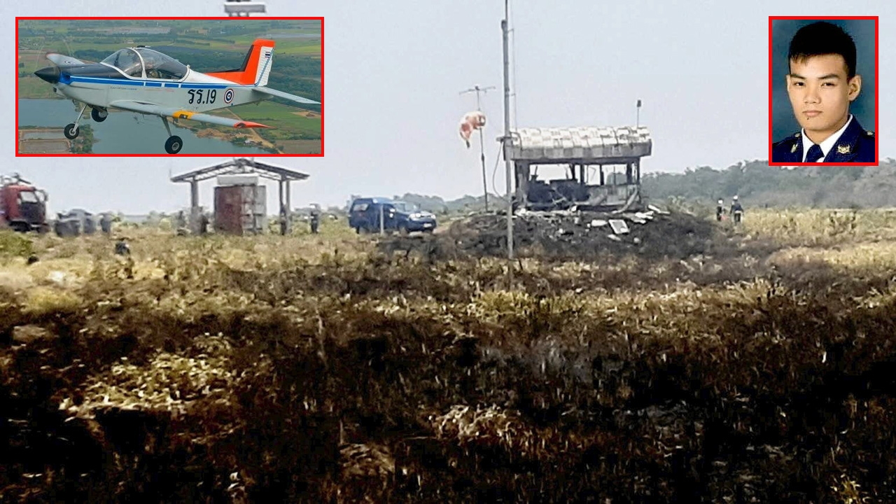 เครื่องบินฝึกแบบที่ 16 ก หรือ CT-4E ของกองทัพอากาศ (ซ้าย) ประสบอุบัติเหตุร่วงตกกลางลานหญ้าใกล้ป้อมรักษาการณ์ ข้างรันเวย์โรงเรียนการบิน อ.กำแพงแสน จ.นครปฐม ทำให้ ร.อ.ศุภกิจ อินทะชัย(ขวา) ครูการบินเสียชีวิต และ ร.ต.ภูรินท์ ชนะ ศิษย์การบินได้รับบาดเจ็บสาหัส.