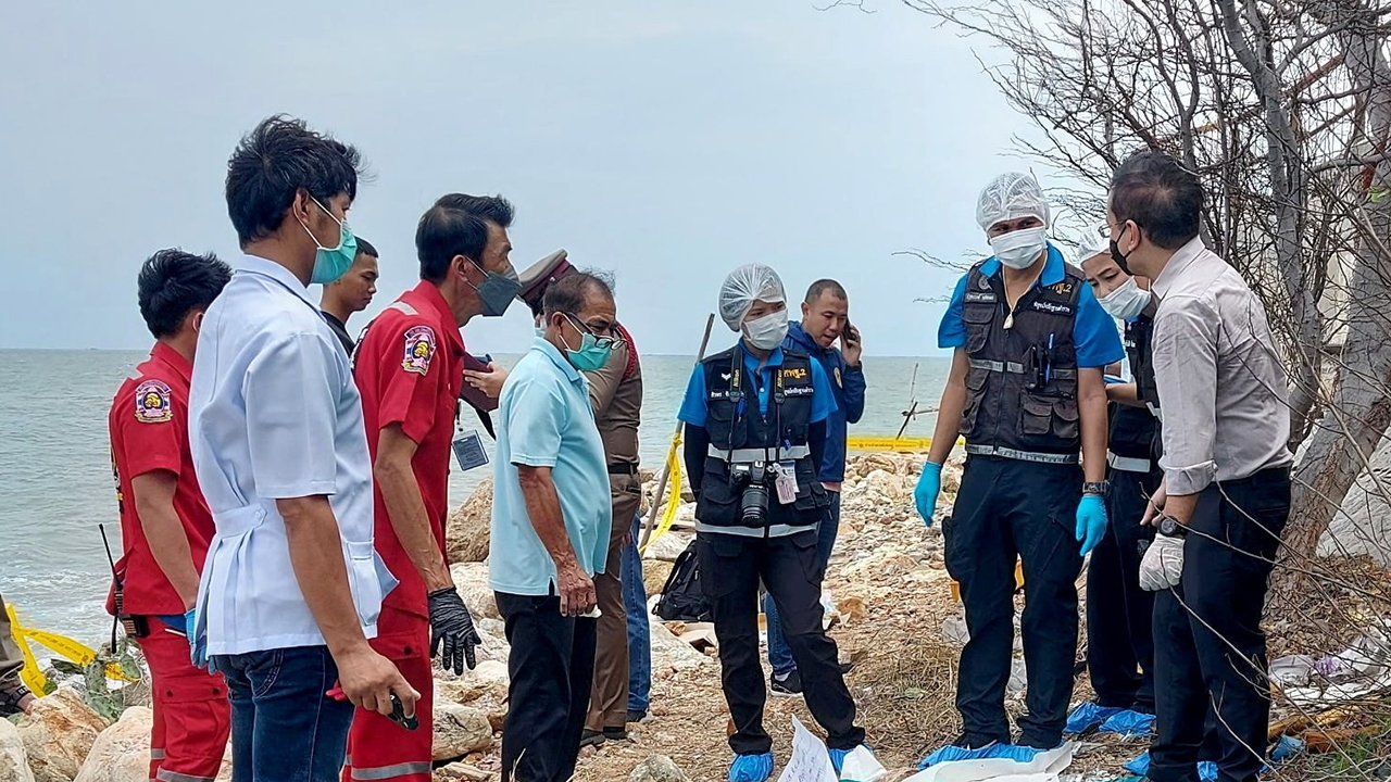 เจ้าหน้าที่ชันสูตรศพ นายสิริคุปต์ จันทร์แจ้ง อายุ 32 ปี ครูโรงเรียนบ่อทองวงษ์จันทร์วิทยา อ.บ่อทอง จ.ชลบุรี สภาพ มีรอยกระสุนปริศนากลางศีรษะเสียชีวิตริมทะเล จุดชมวิวถนนรอบเขาสามมุข ต.แสนสุข อ.เมืองชลบุรี.