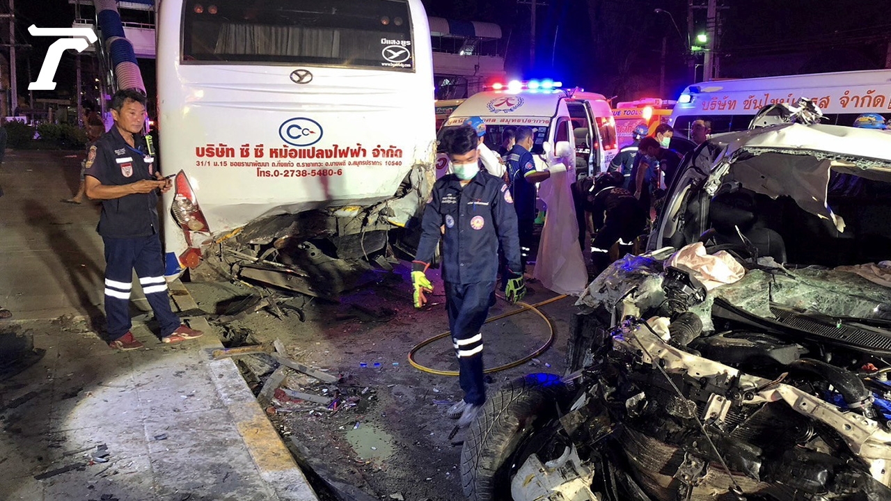แม่ค้าขายนาฬิกาแฟชั่นขับกระบะ 4 ประตู พาเพื่อนไปทำธุระกลางดึก เสียหลักพุ่งชนท้ายรถมินิบัสจอดรอรับคนงานอยู่ริมถนน รถเละกลายเป็นเศษเหล็กแม่ค้าพร้อมเพื่อนดับสยองยกคัน 3 ศพ เจ้าหน้าที่กู้ภัยใช้เครื่องตัดถ่างงัดซากรถนำศพออกมาอย่างทุลักทุเล ตำรวจเผยพยานเห็นแม่ค้าสาวซิ่งเหินสะพานข้ามคลองเสียหลักชนท้ายรถคู่กรณี เร่งรวบรวมหลักฐานสรุปสาเหตุสาวซิ่งกระบะเหินสะพานพุ่งชนท้ายรถมินิบัสดับ 3 ศพ เปิดเผยเมื่อเวลา 01.30 น. วันที่ 8 ก.ค. ร.ต.อ.อดิเทพ โพธิ์เจริญ รอง สว. (สอบสวน) สภ.เมืองสมุทรปราการ รับแจ้งอุบัติเหตุรถกระบะพุ่งชนท้ายรถมินิบัส มีผู้เสียชีวิตติดอยู่คาซากรถหลายราย เหตุเกิดหน้าวัดแพรกษา ถนนพุทธรักษา ต.แพรกษา อ.เมืองสมุทรปราการ หลังรับแจ้งประสานเจ้าหน้าที่กู้ชีพ รพ.สมุทรปราการ เจ้าหน้าที่มูลนิธิร่วมกุศลสมุทรปราการ และเจ้าหน้าที่มูลนิธิป่อเต็กตึ๊ง พร้อมอุปกรณ์ตัดถ่างเดินทางตรวจสอบที่เกิดเหตุเป็นถนน 2 เลน บริเวณช่องทางซ้ายใกล้กับทางเข้าวัดแพรกษา พบรถกระบะ 4 ประตู ยี่ห้ออีซูซุ ดีแมคซ์ สีขาว ทะเบียน 8กก 5710 กรุงเทพมหานคร สภาพหน้ารถพังยับจนกลายเป็นเศษเหล็ก ภายในห้องโดยสารพบผู้เสียชีวิตติดคาซาก 3 ราย ทราบชื่อต่อมาคือ น.ส.สุพิชญา ชังศัตรู อายุ 32 ปี คนขับ น.ส.อมมรัตน์ ทิพย์โรจน์ อายุ 40 ปี นั่งเบาะข้างคนขับ และนายทินกร ธนะรักษ์ อายุ 43 ปี นั่งเบาะหลัง เจ้าหน้าที่ช่วยกันใช้เครื่องตัดถ่างตัดชิ้นส่วนของซากรถนานกว่า 30 นาที สามารถทยอยนำร่างของผู้เสียชีวิตทั้งหมดออกมาได้ นำส่งสถาบันนิติเวช รพ.รามาธิบดี ตรวจสอบในรถพบนาฬิกาแฟชั่นตกอยู่หลายเรือน ท้ายรถยังพบกล่องพลาสติก 1 ใบ ภายในบรรจุนาฬิกาแบบต่างๆหลายเรือน ใกล้กันพบรถมินิบัสสีขาว ทะเบียน 40-1635 สมุทรปราการ คู่กรณี จอดอยู่ในสภาพท้ายรถถูกชนพังยับสอบสวนนายประจักษ์ สุวรรณจิตร์ อายุ 39 ปี คนขับรถมินิบัส กล่าวว่า นำรถมินิบัสมาจอดอยู่ริมถนนหน้าวัดแพรกษา ตั้งแต่เวลา 23.00 น. เพื่อเตรียมตัวไปรับพนักงานช่วงเช้ามืดย่านถนนกิ่งแก้ว หลังจากจอดรถเสร็จนอนรอเวลาอยู่บนรถ ระหว่างนั้นต้องสะดุ้งเมื่อได้ยินเสียงรถเสียหลังพุ่งเข้าชนท้ายอย่างเต็มแรง รีบลงไปดูพบว่าภายในรถกระบะคู่กรณีมีคนติดอยู่ในซากรถ 3 คน รีบแจ้งเจ้าหน้าที่มาช่วยเหลือร.ต.อ.อดิเทพ โพธิ์เจริญ รอง สว. (สอบสวน) สภ.เมืองสมุทรปราการ เปิดเผยว่า สอบปากคำญาติผู้เสียชีวิตทราบว่า น.ส.สุพิชญา ชังศัตรู อายุ 32 ปี คนขับรถกระบะ มีอาชีพเป็นแม่ค้าขายนาฬิกาแฟชั่นตามตลาดนัด ส่วนผู้ตายทั้งสองเป็นเพื่อนกัน ก่อนเกิดเหตุคาดว่า น.ส.สุพิชญาน่าจะขั